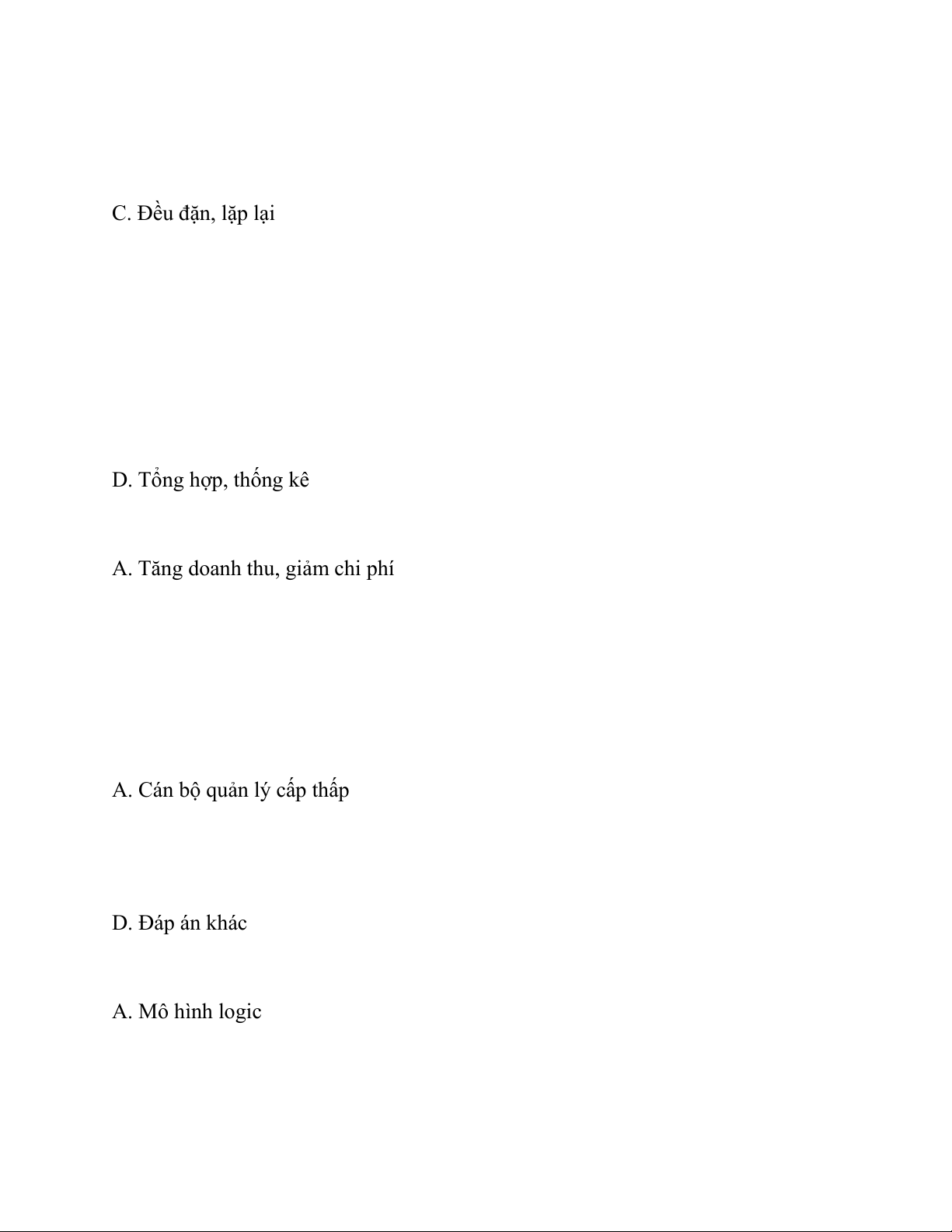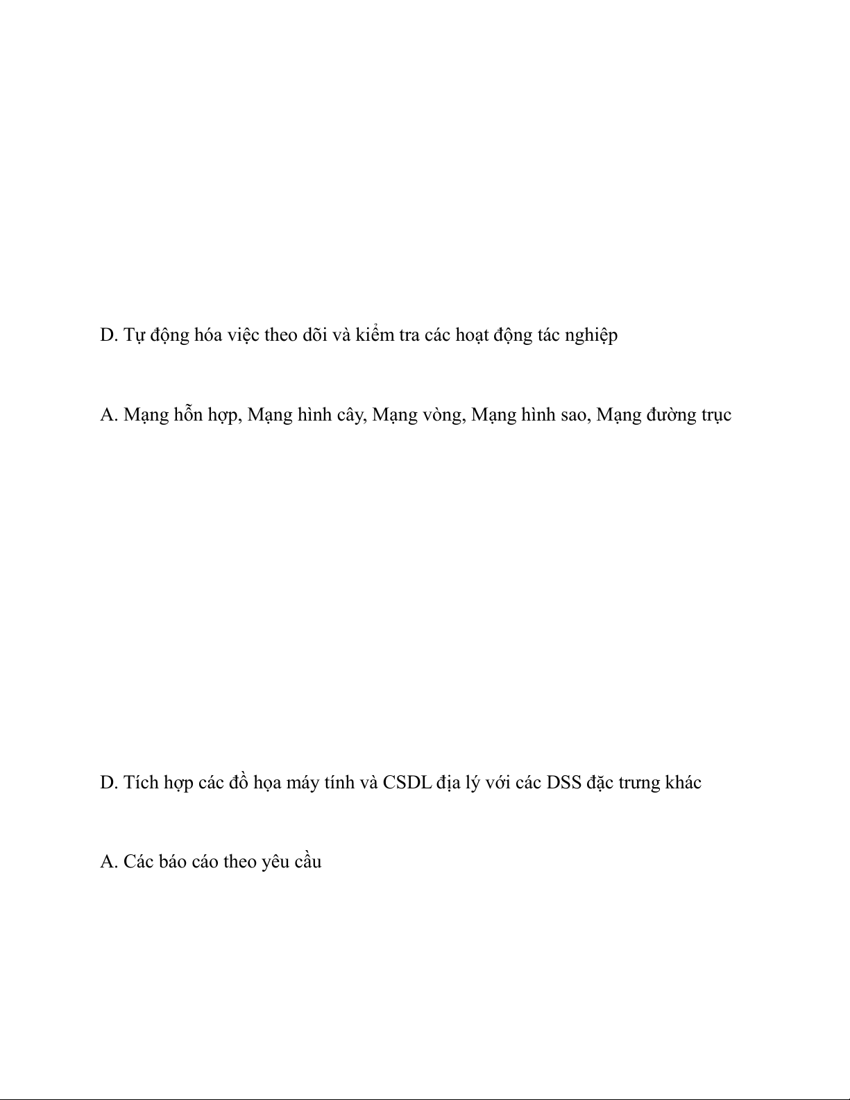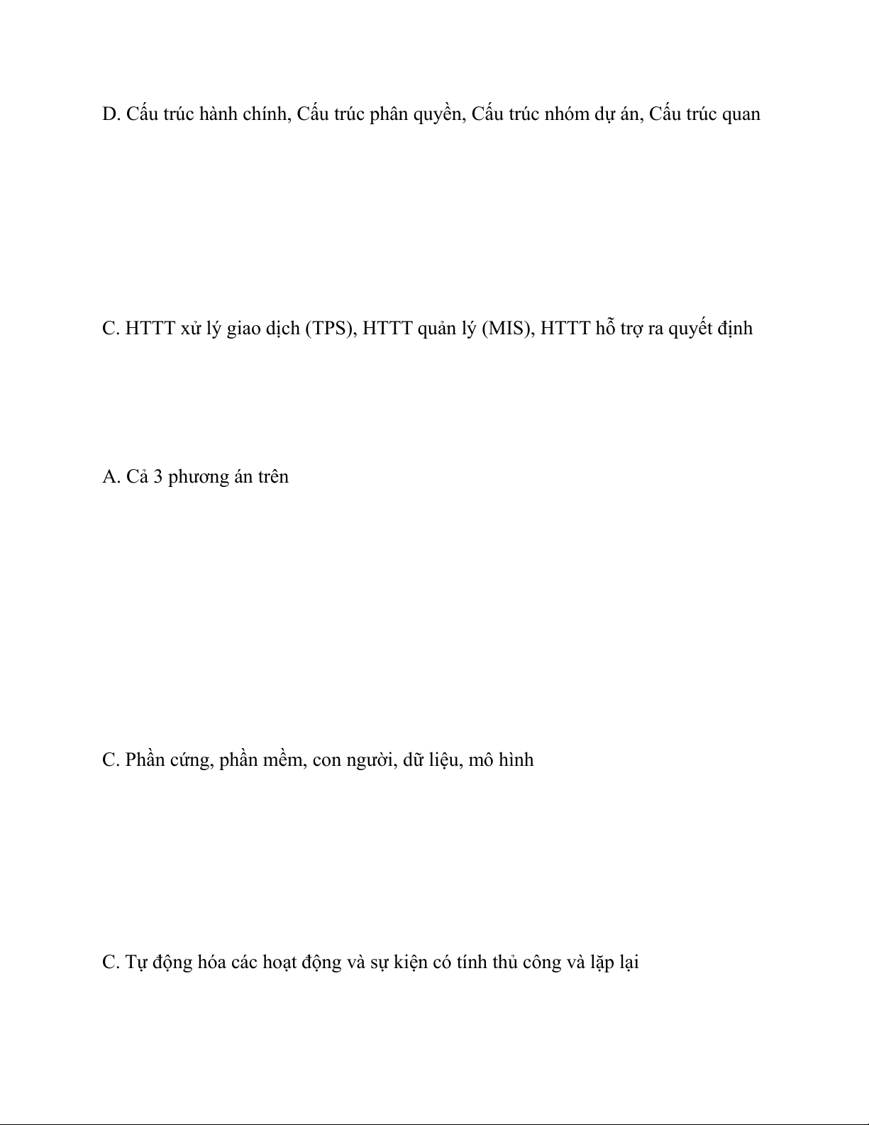 Câu 34: Các hệ thống thông tin theo mức quản lý bao gồm: