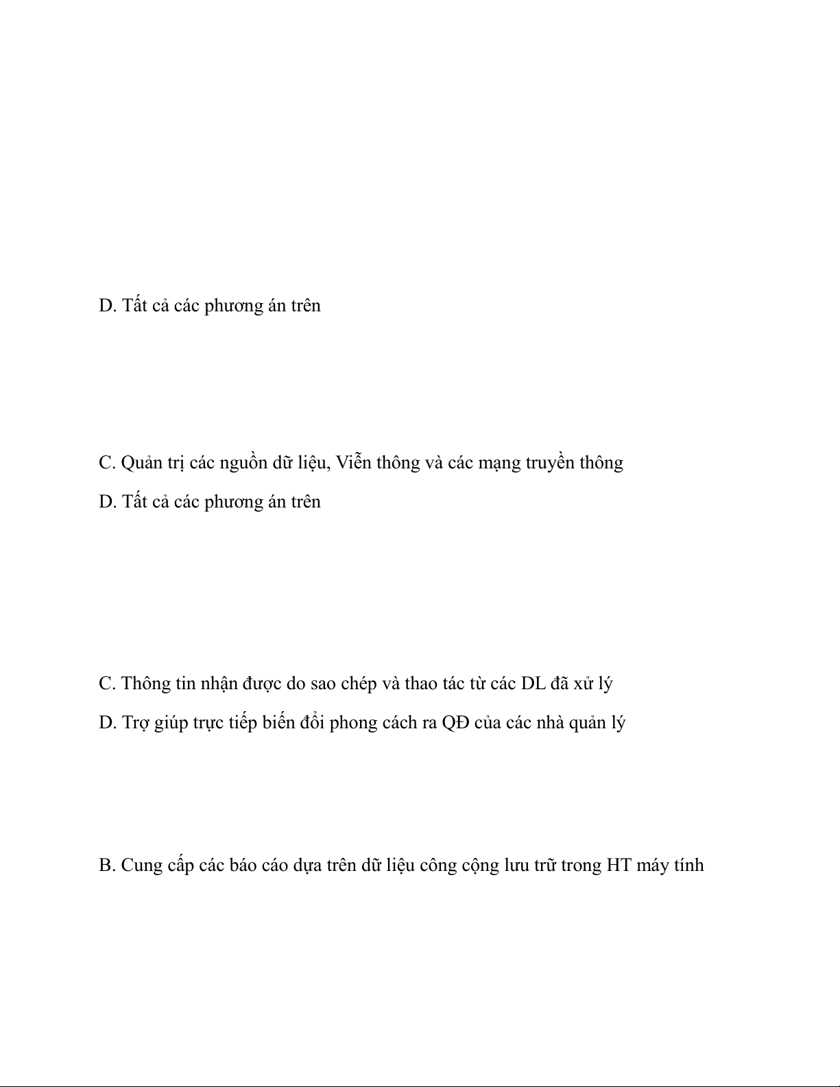 Câu 35: Các hệ thống con trong DSS bao gồm: A. Cả 3 phương án trên