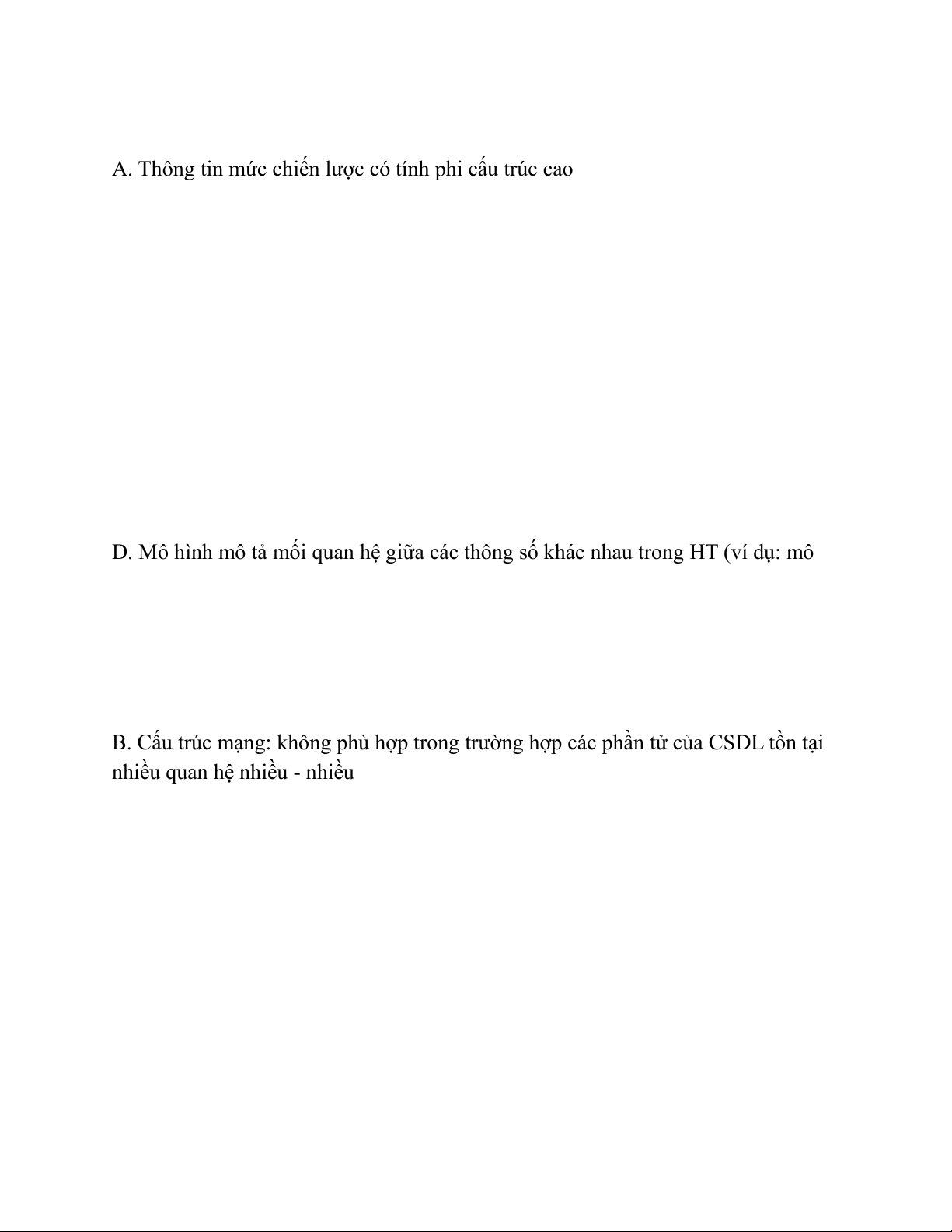 D. Cấu trúc quan hệ: hỗ trợ các yêu cầu thông tin đột xuất, nhưng không xử lý