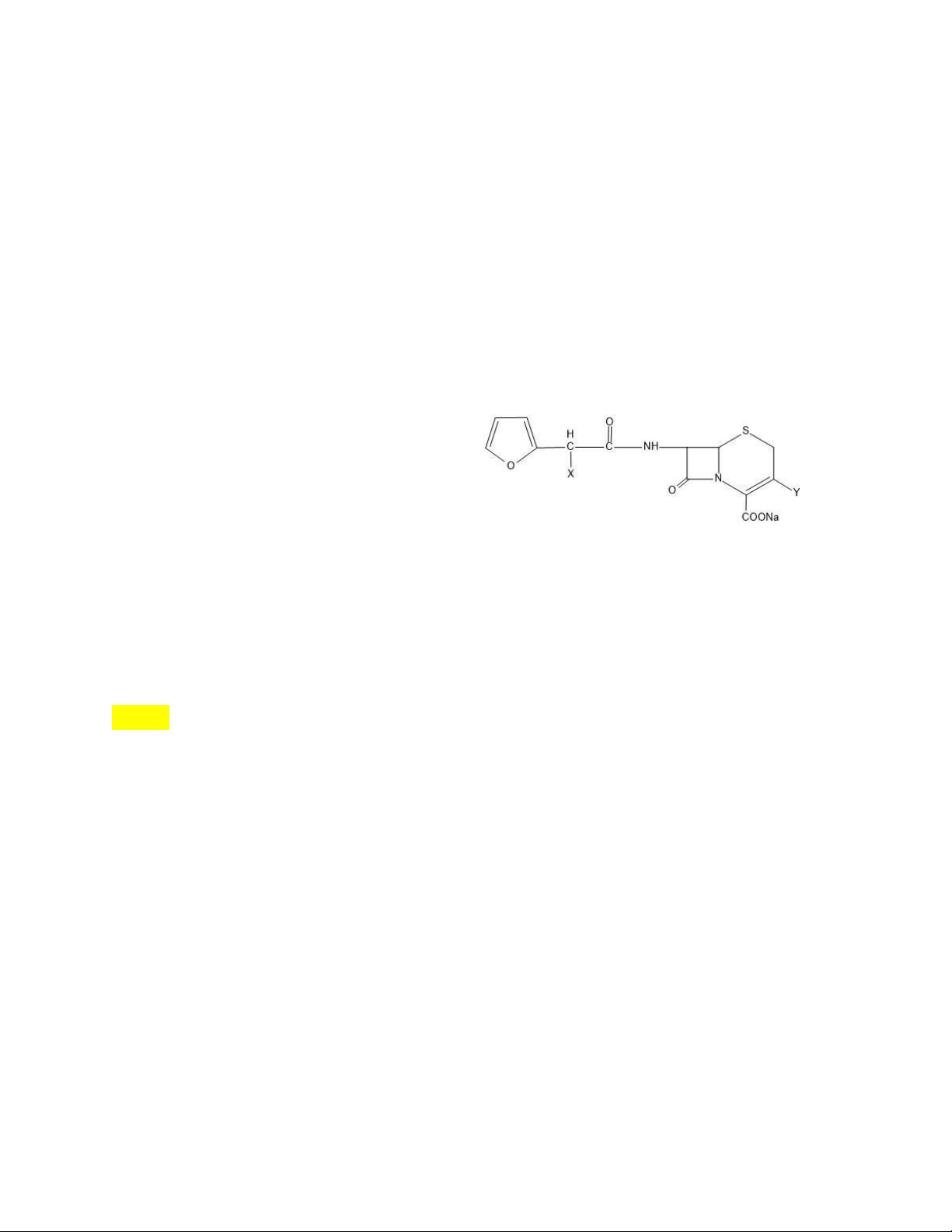 Câu 8: Hoàn thành cấu trúc của kháng sinh Cefuroxim Na A. X= - NH2; Y= - CH2OCOCH3 B. X= - NH2; Y= - CH2OCONH2 C. X= =N-OCH3; Y= - CH2OCOCH3 D. X= =N-OCH3; Y= - CH2OCONH2