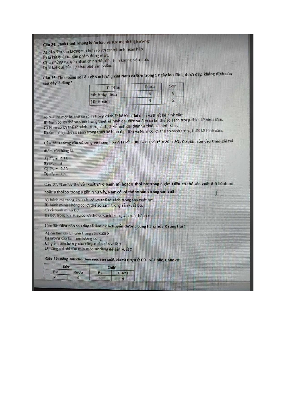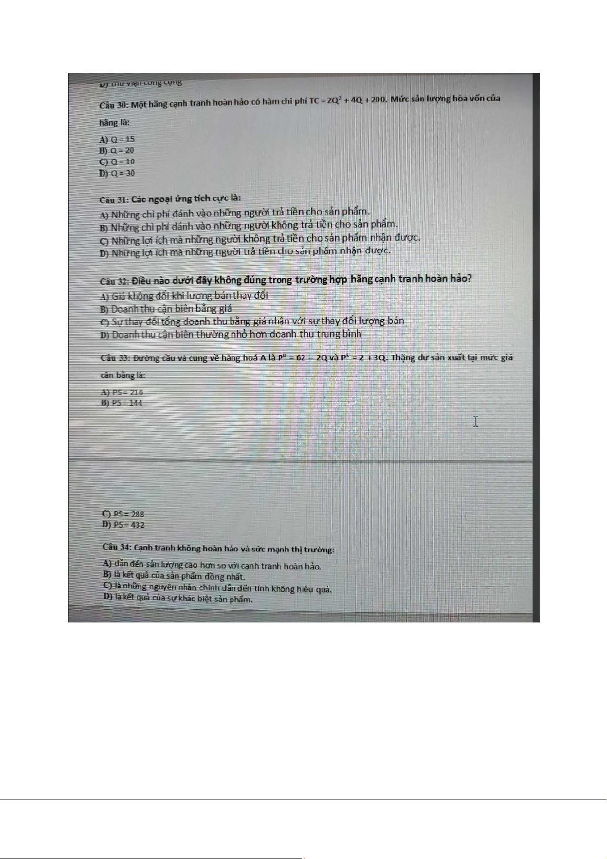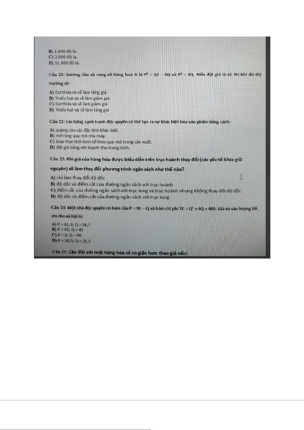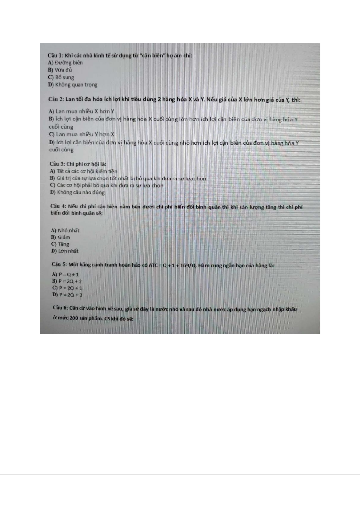 Đề trắc nghiệm môn Kinh tế vi mô | Trường Đại học Kinh Tế Quốc Dân