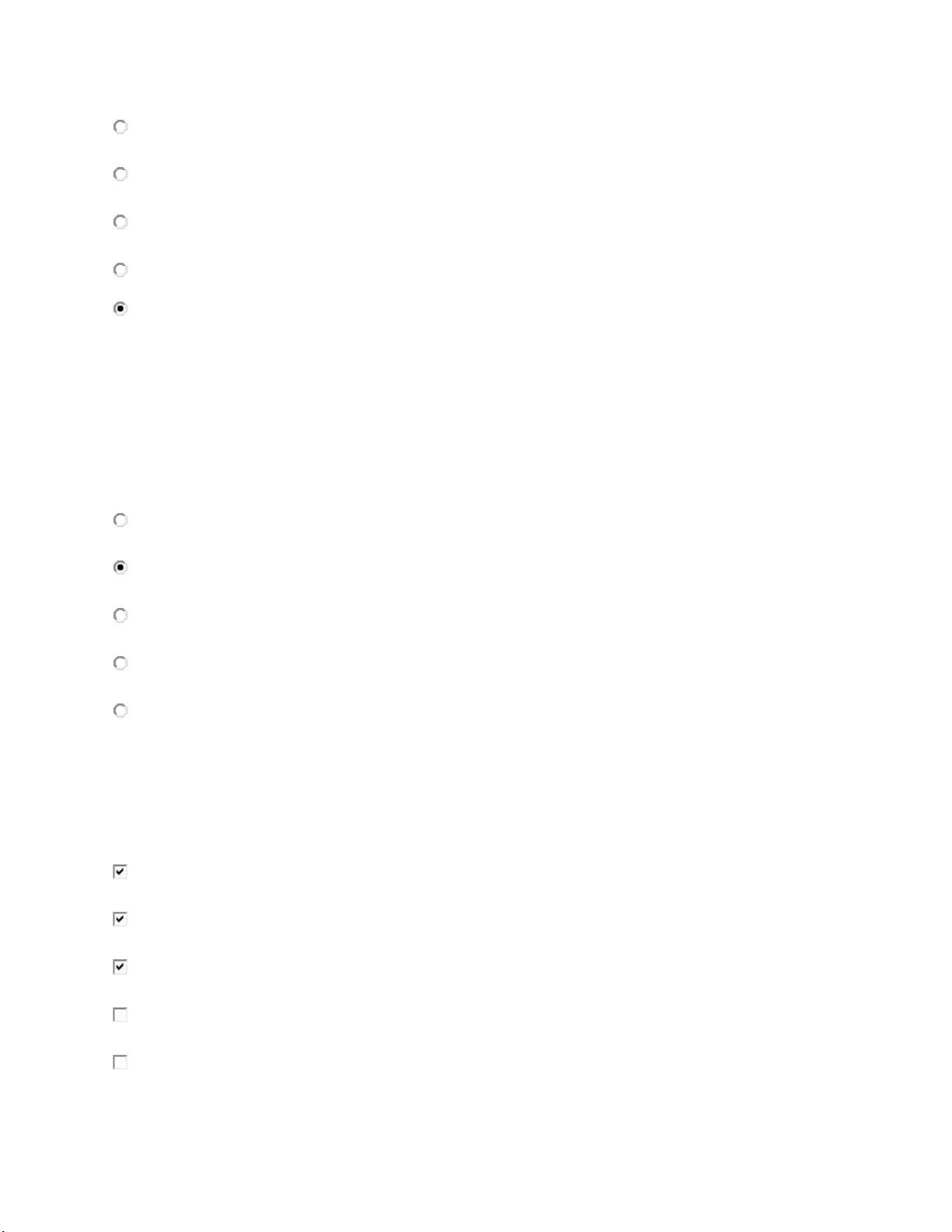 Lựa chọn nào sau đây không phải là một mức yêu cầu người dùng? (chọn 2) Hiệu quả Năng suất Chức năng Hài lòng Dùng được correct Answer Correct: Xem đá p á n Gử i