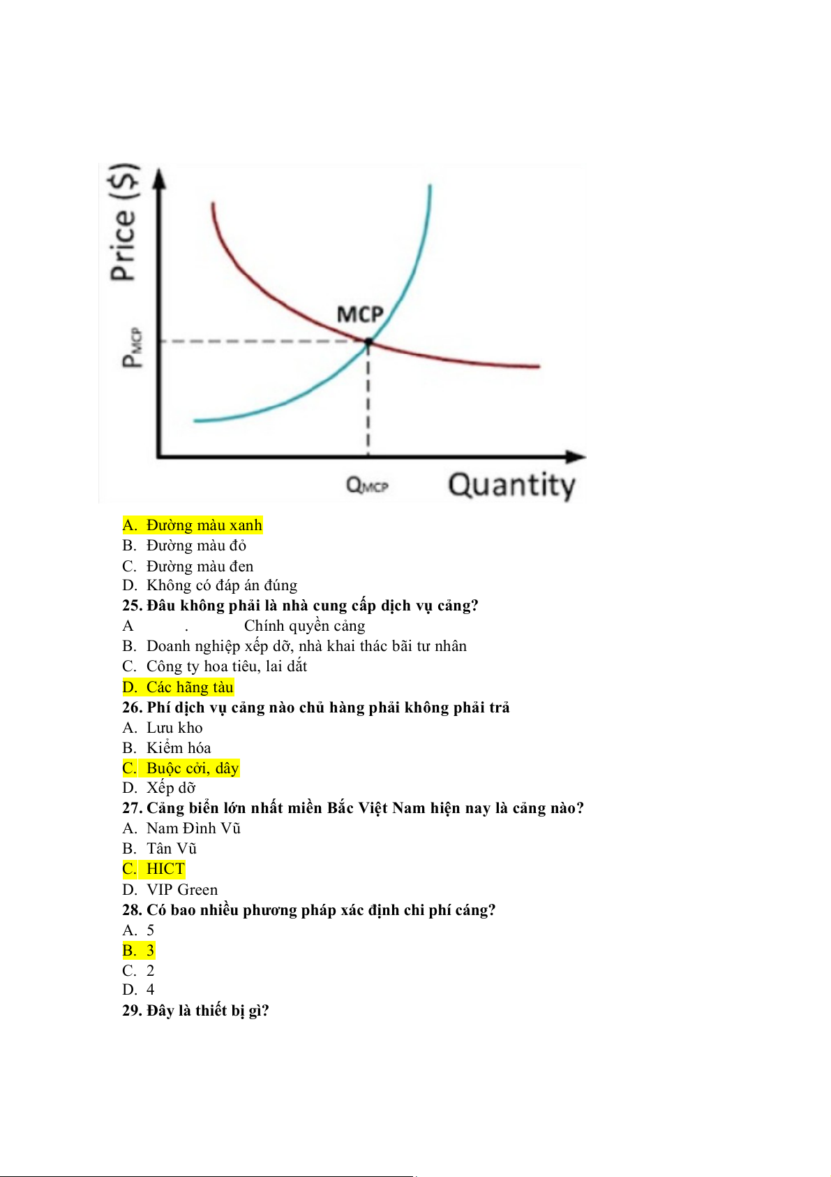 25. Đâu không phải là nhà cung cấp dịch vụ cảng? A . Chính quyền cảng