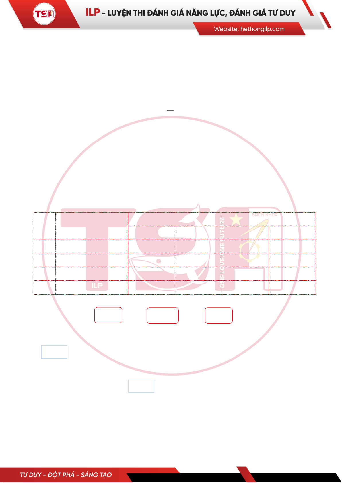 TSA 39: [ILP] Chọn đáp án thích hợp: