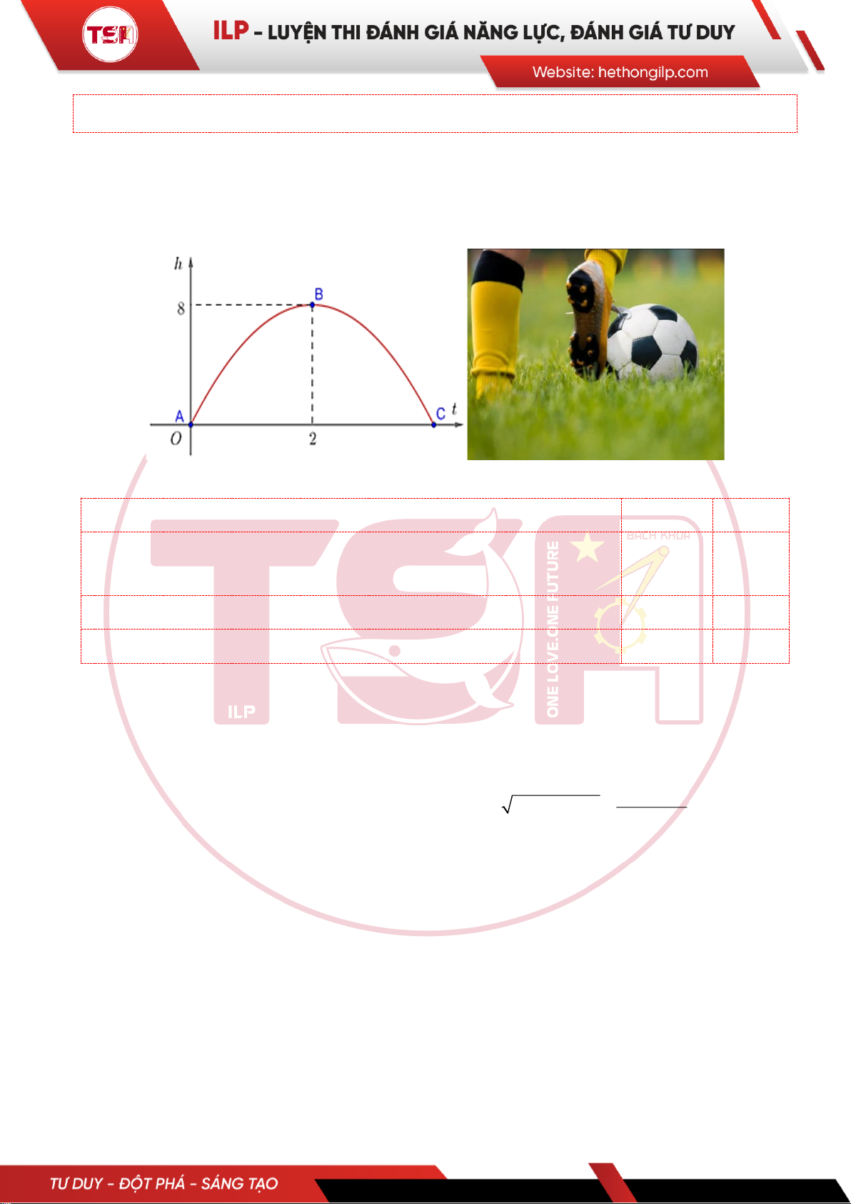Câu 1: [ILP] Khi một quả bóng được đá lên, nó sẽ đạt đến độ cao nào đó rồi rơi xuống. Hình minh hoạ