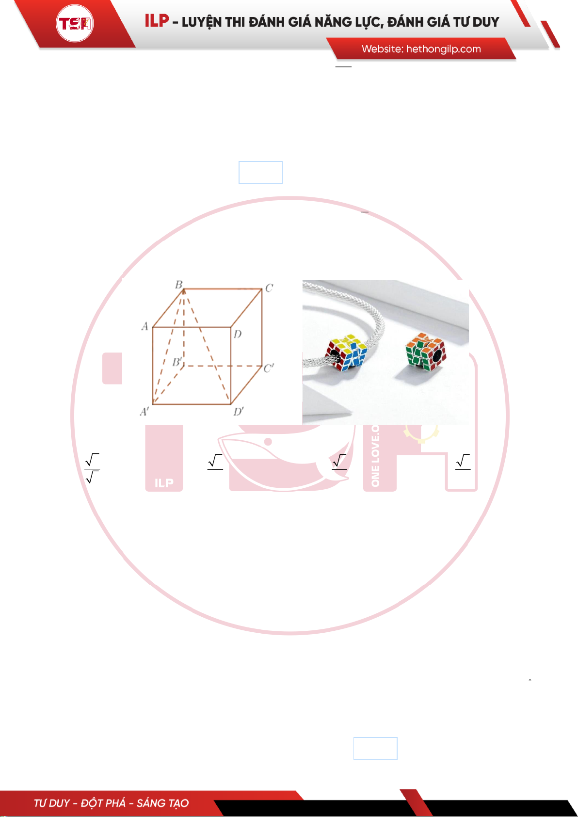 Câu 29: [ILP] Rubik hình lập phương ABCD.A′B′C′D′ (tham khảo hình vẽ).