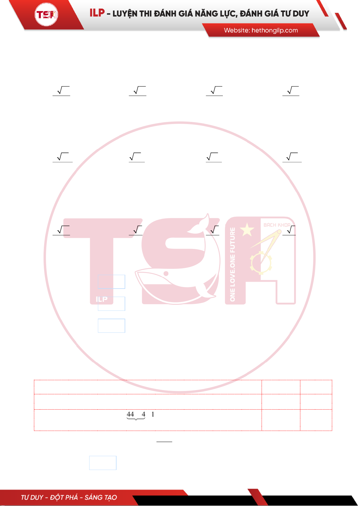 Câu 36: [ILP] Số chính phương hay còn gọi là số hình vuông là số tự nhiên có căn bậc hai là một số tự