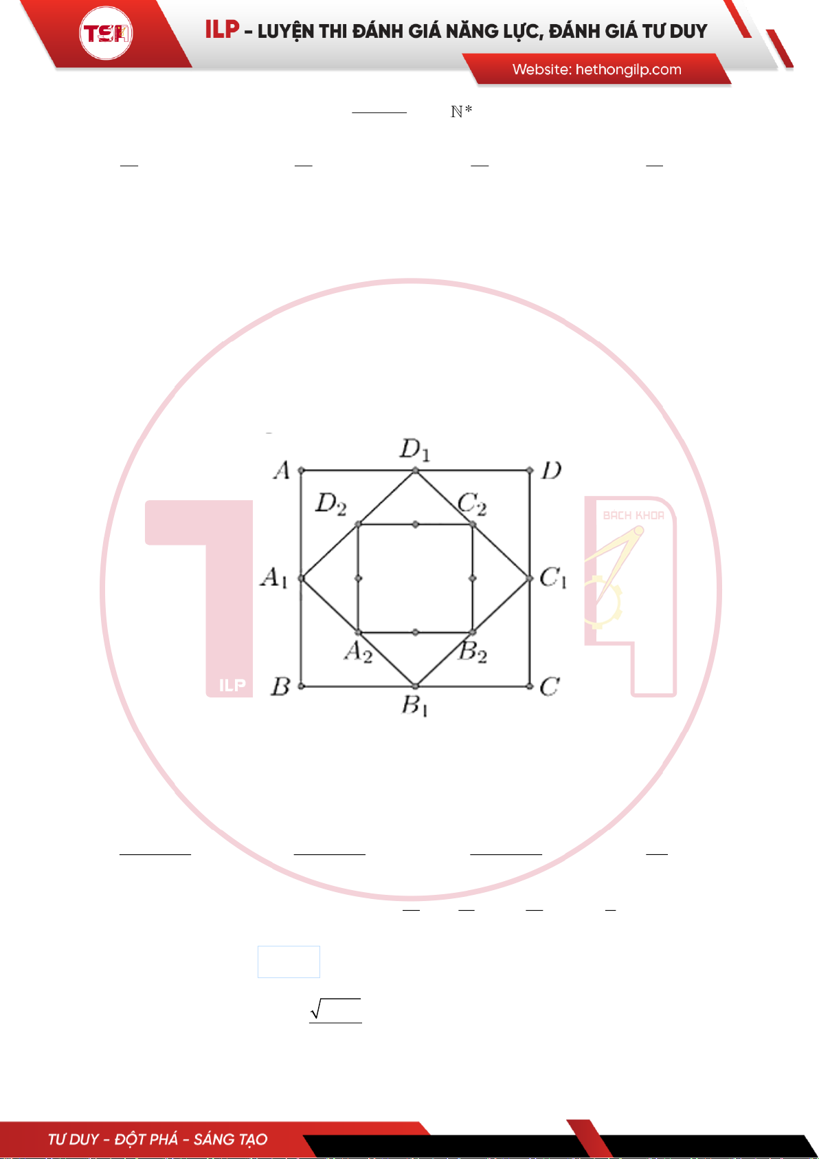 TSA 15: [ILP] Cho hình vuông ABCD có các cạnh bằng a và có diện tích bằng S1. Nối bốn trung