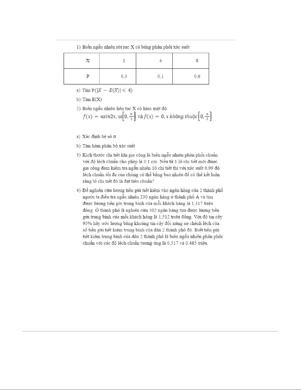 Câu 1. Tuổi thọ của một loại sản phẩm là một biến ngẫu nhiên phân phối chuẩn với trung bình là 3