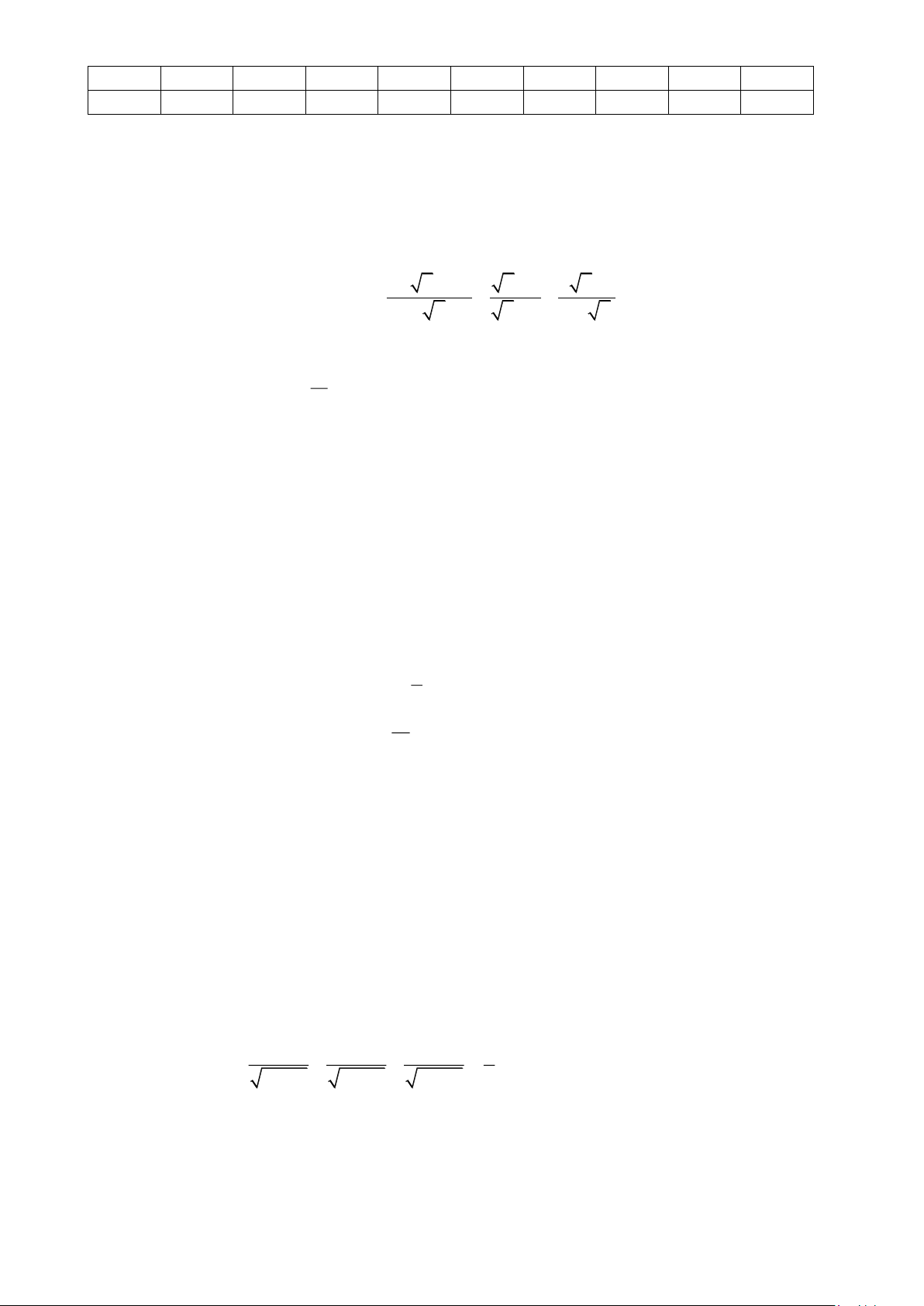 Câu 6. Cho a 0 , b 0, c 0 và ab + bc + ac = 3abc . Tìm giá trị nhỏ nhất của 2 2 2 a b c P = + + c ( 2 2