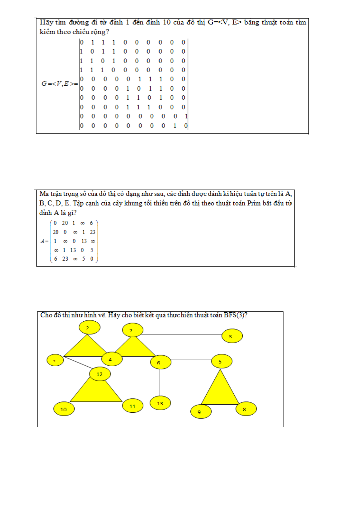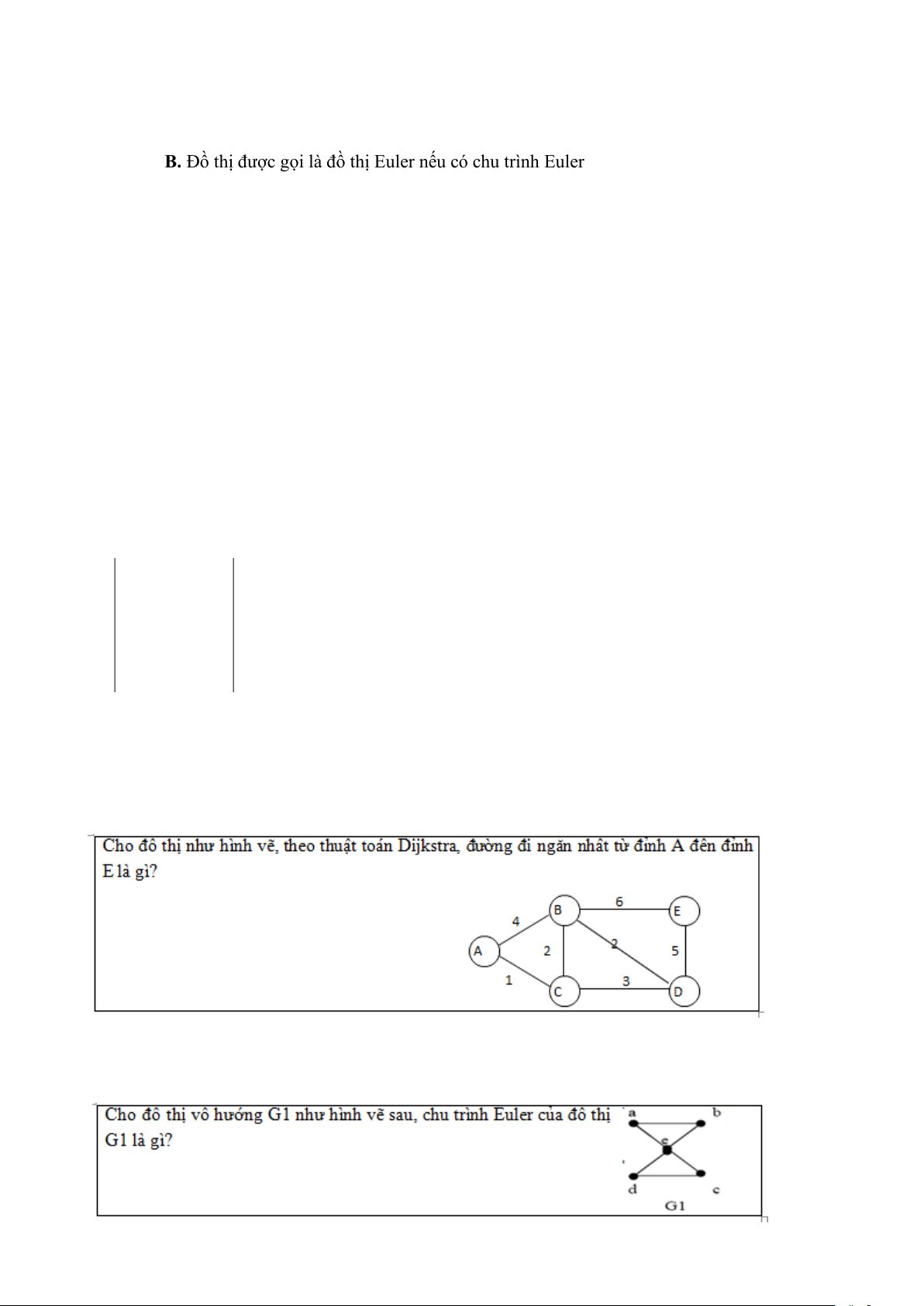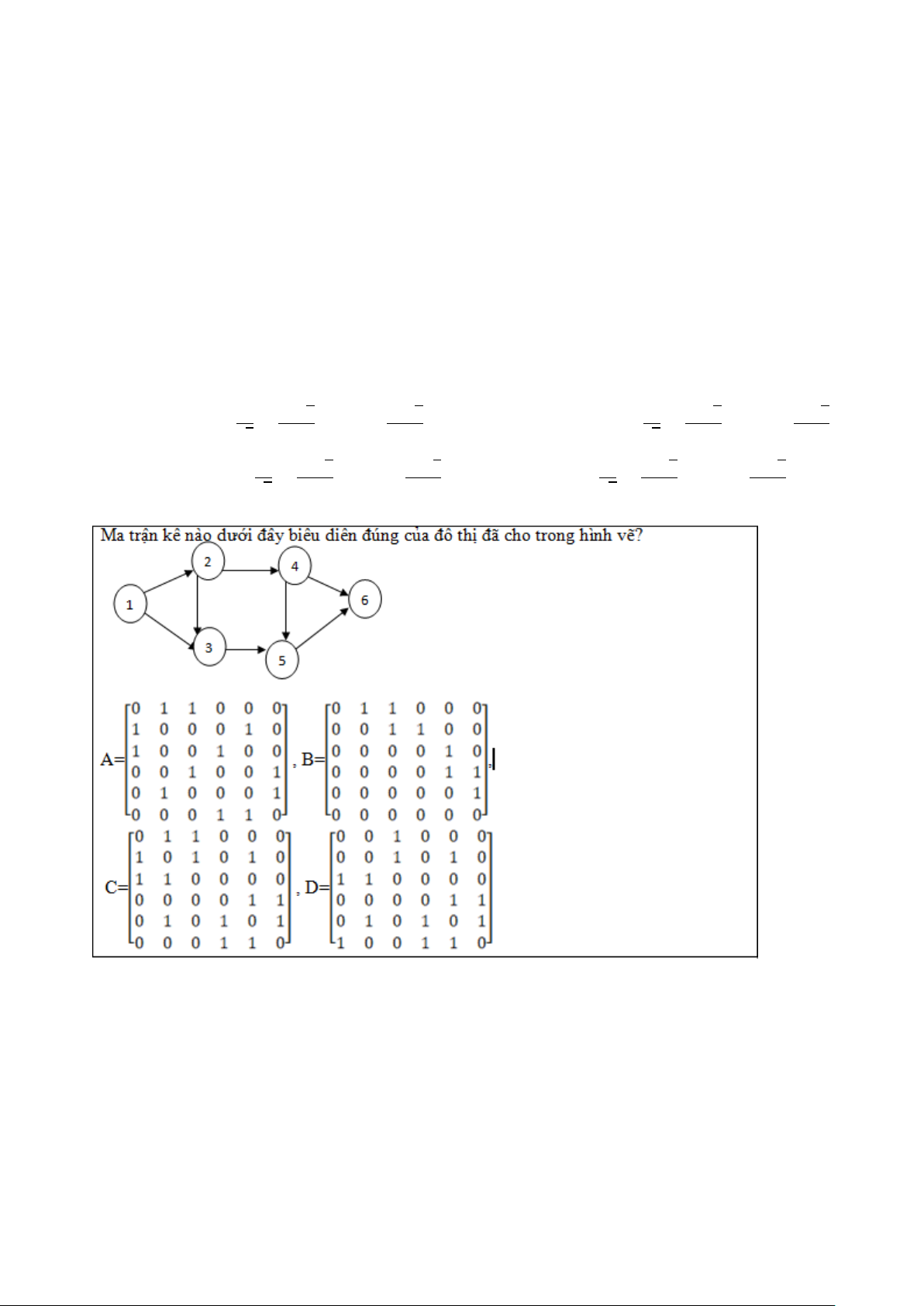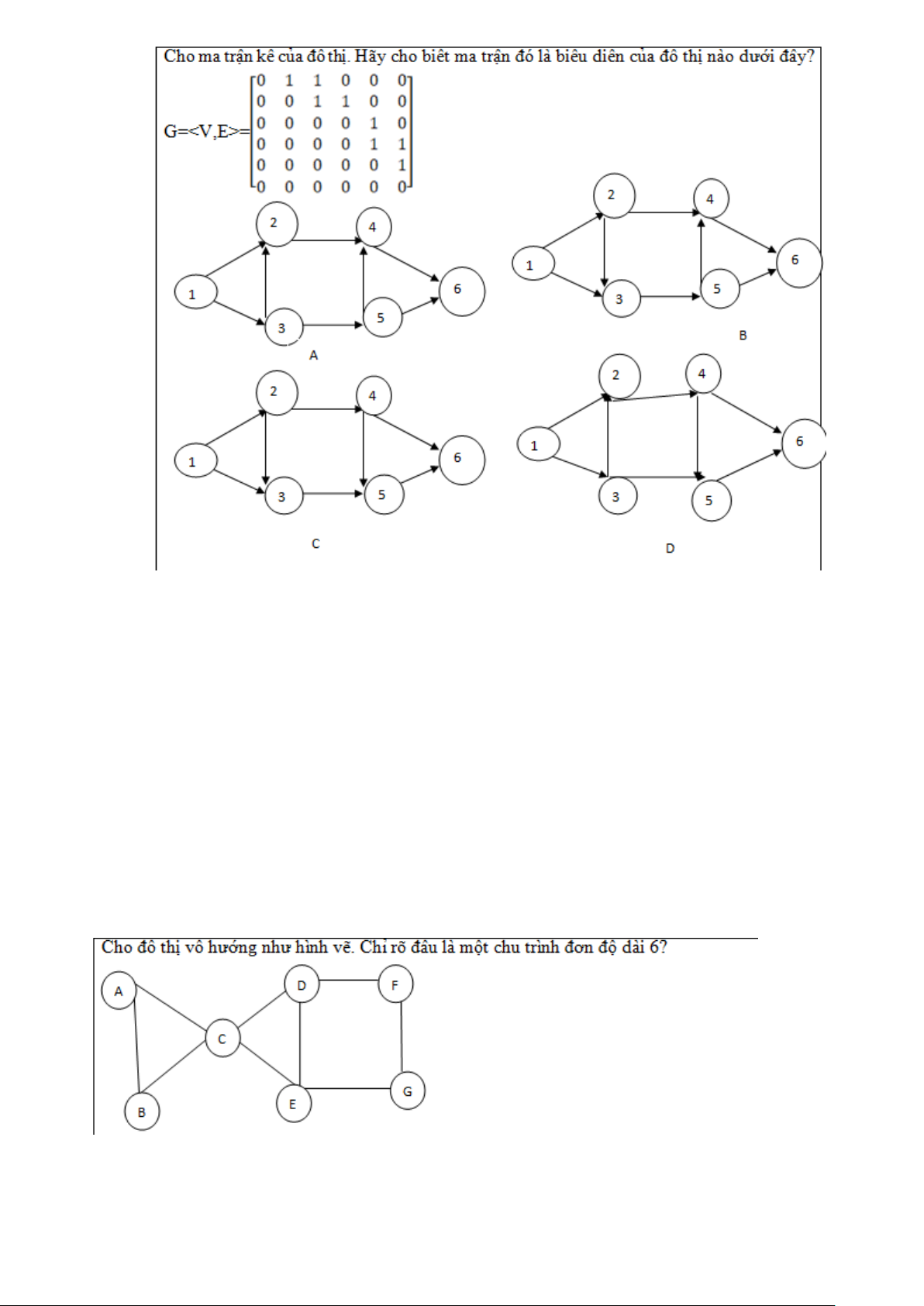 D. Giữa hai đỉnh bất kì i, j V có thể có nhiều hơn một cung nối; có kể đến thứ tự các đỉnh 8 Câu 23. A. B. C. Đồ thị D. Đồ thị E. F. Đồ thị G. H. Đồ thị