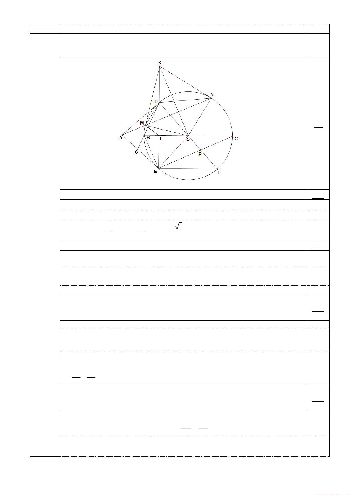Từ (*) và (**) suy ra 5 điểm K, M, I, O, N cùng nằm trên một đường tròn đường 0,25