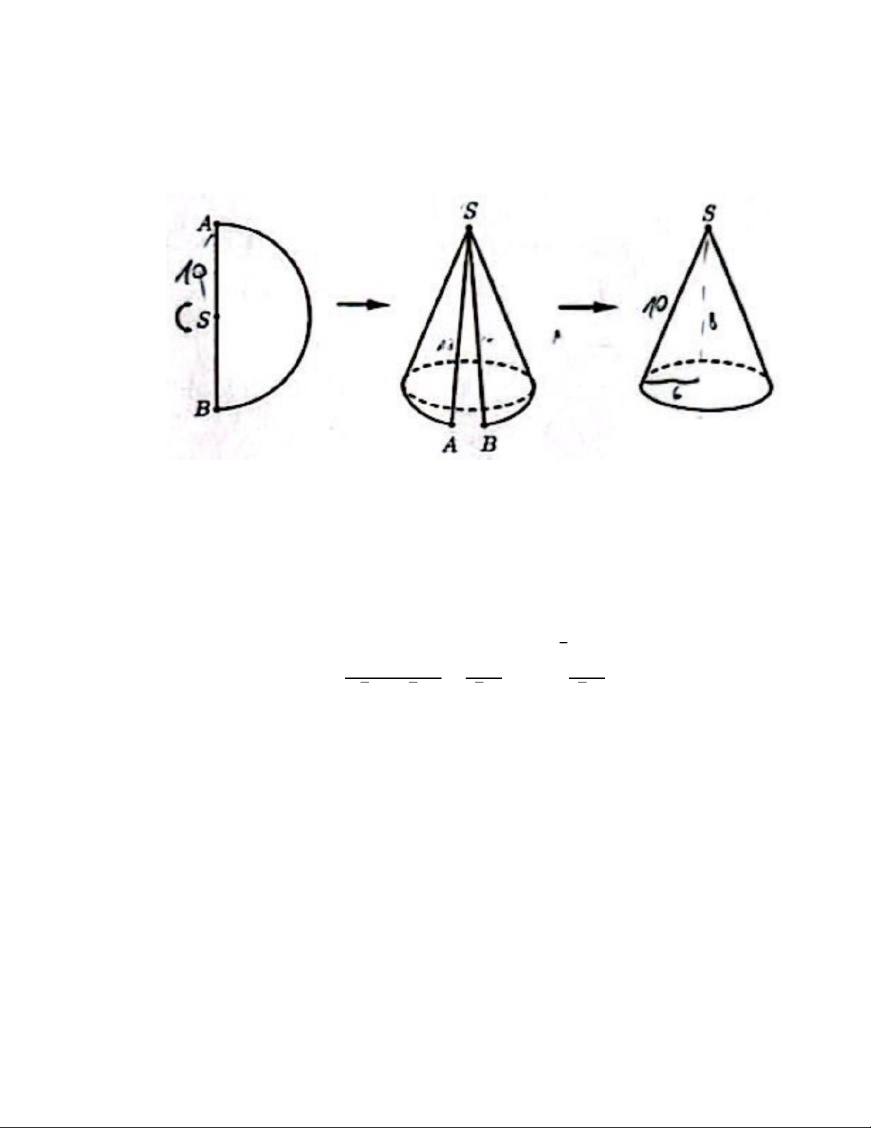 tròn đó lại sao cho 𝑆𝐴 và 𝑆𝐵 sát vào nhau như hình vẽ. Tỉnh thể tích của hình nón