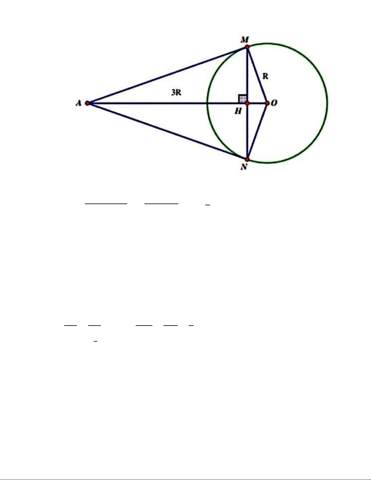 𝑂𝐴 = 3𝑅. Kẻ hai tiểp tuyển 𝐴𝑀, 𝐴𝑁 với (𝑂; 𝑅) ( 𝑀, 𝑁 là hai tiếp điểm). Gọi 𝐻 là