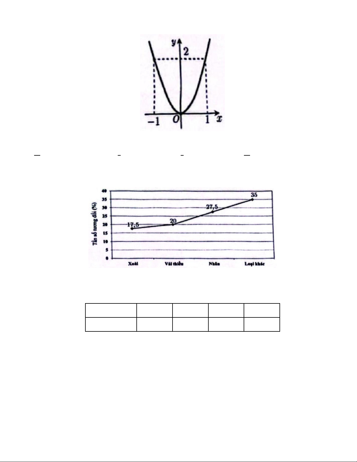 Câu 17. Hàm số nào dưới đây có đồ thị như hình vẽ? A. 𝑦 = −2𝑥2. B. 𝑦 = 2𝑥2. C. 𝑦 = −𝑥2. Trang 2 D. 𝑦 = 𝑥2.