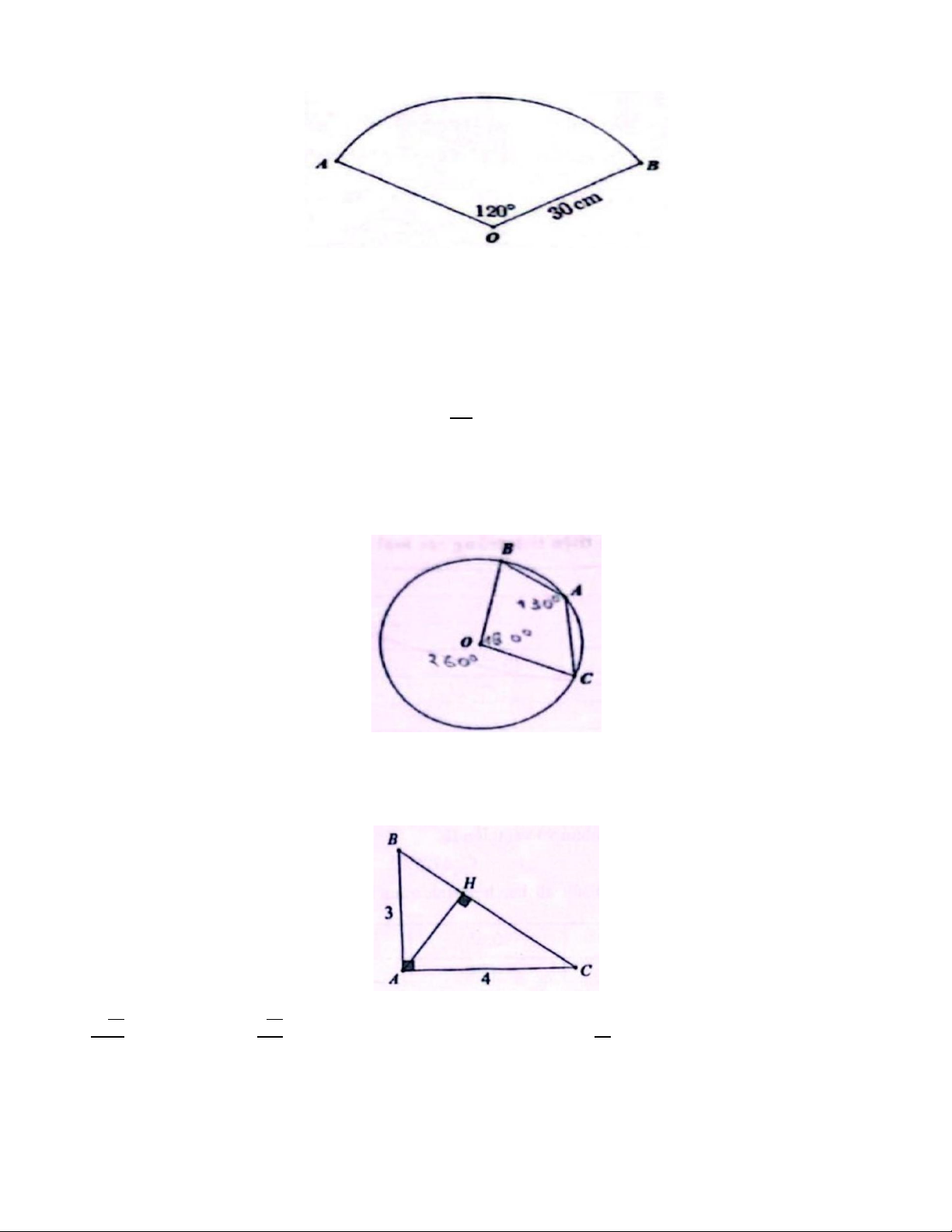 Câu 23. Để trang trí lớp, bạn Lan đã đùng 4 miếng bia hình quạt tròn bán kính 30 cm úng với cung