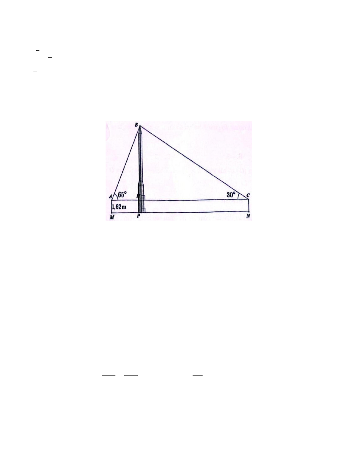 là 65∘ và 30∘. Biết chiều cao của hai giác kế là 𝐴𝑀 và 𝐶𝑁 đều bằng 1,62 m; 𝑀𝑁 = 100 m. Chiều cao