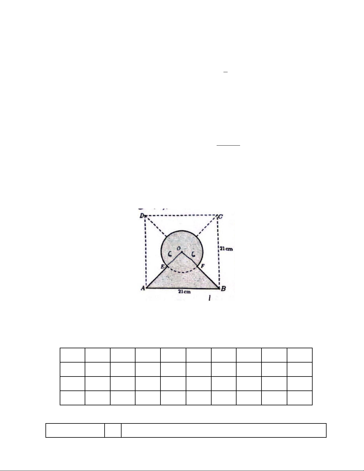 b) Từ một tấm bia hình vuông cạnh 21 cm , bạn Nga cát được một hình có dạng như hình vẽ (phần tô