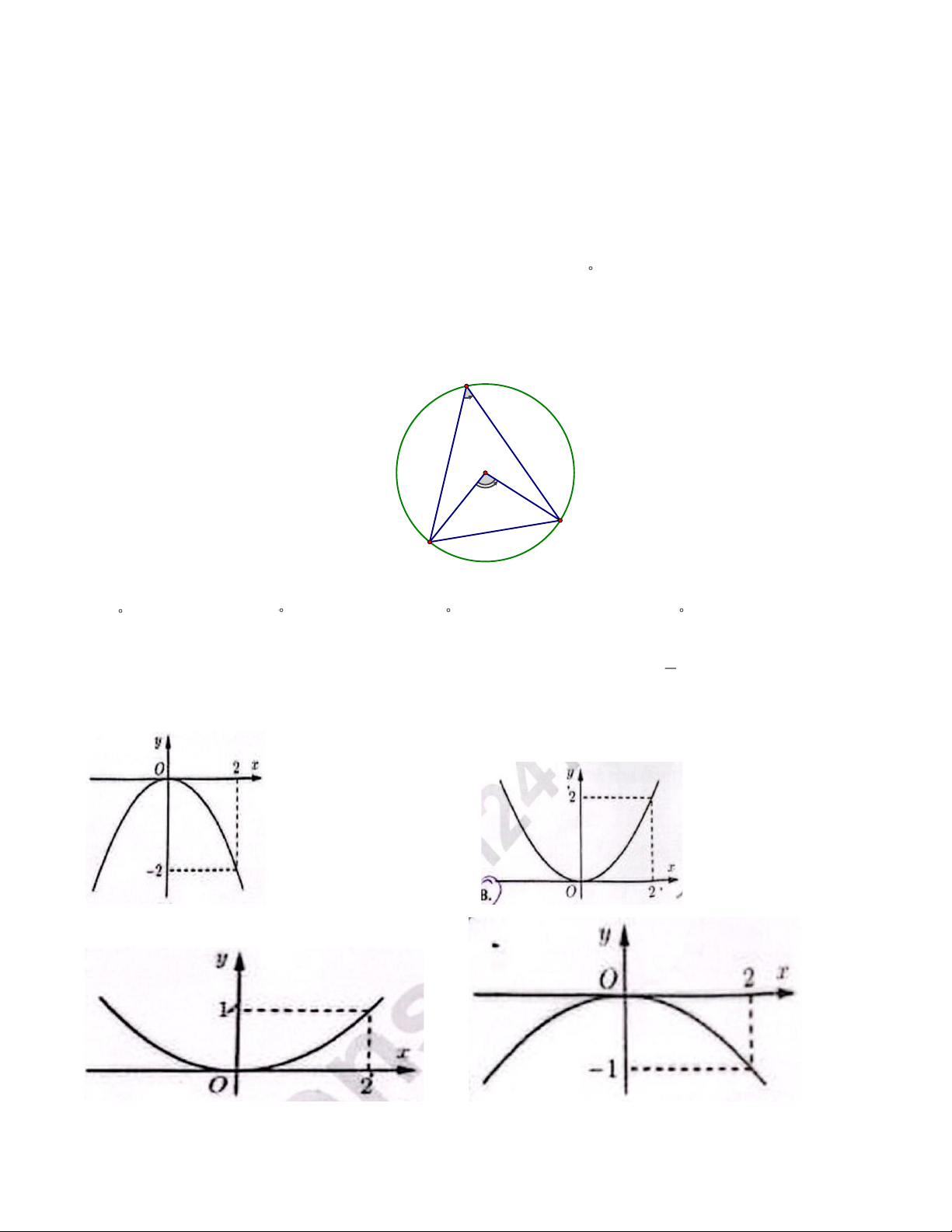Câu 1. Cho tam giác ABC nội tiếp đường tròn (O) và BAC = 60 (minh họa như hình vẽ bên dưới).Số đo của BOC bằng A 60° O C B A. 121 . B. 60 . C. 30 . D. 120 .