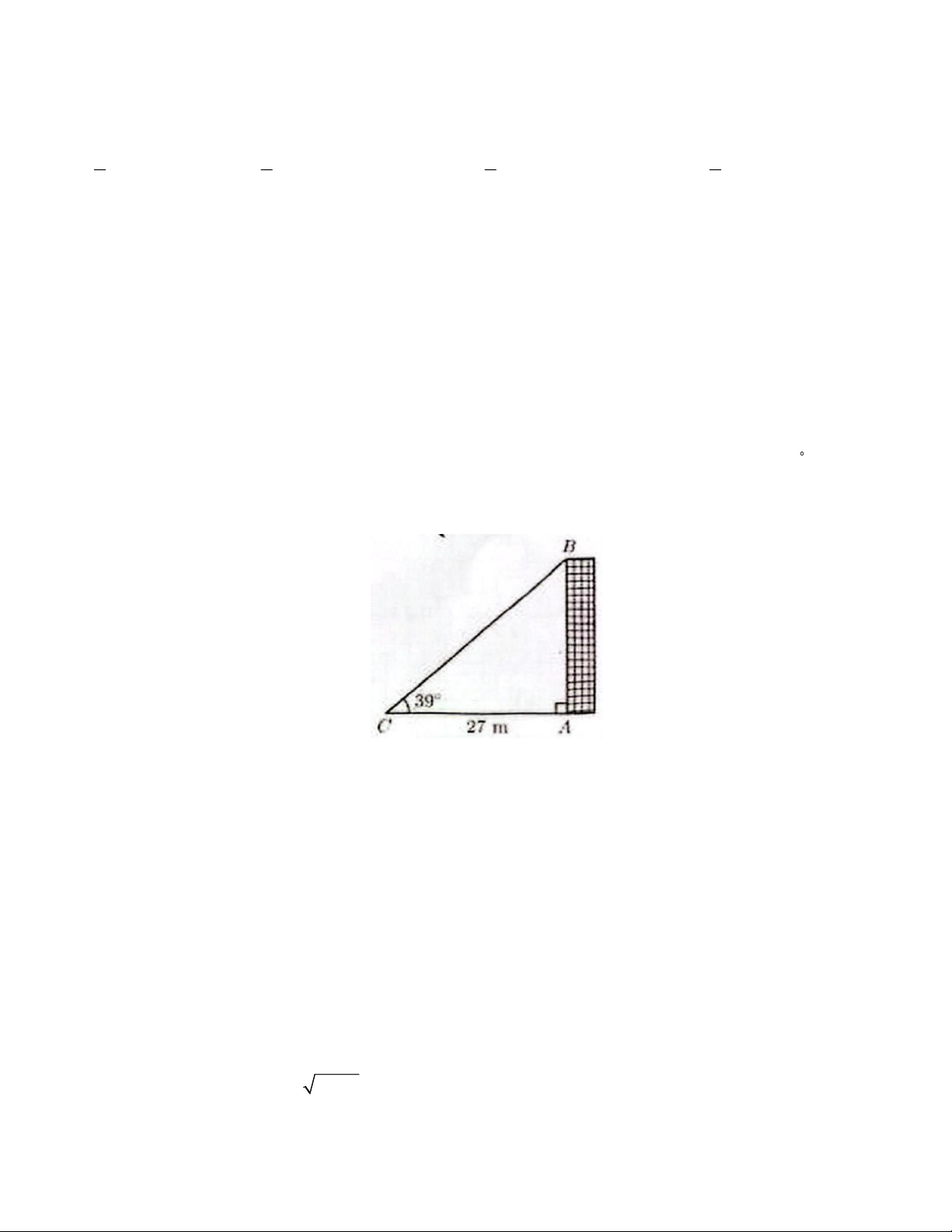 Câu 10. Góc tạo bời tia nắng mặt trời chiếu qua điểm B trên nóc tòa nhà với mặt đất là 39 và bóng