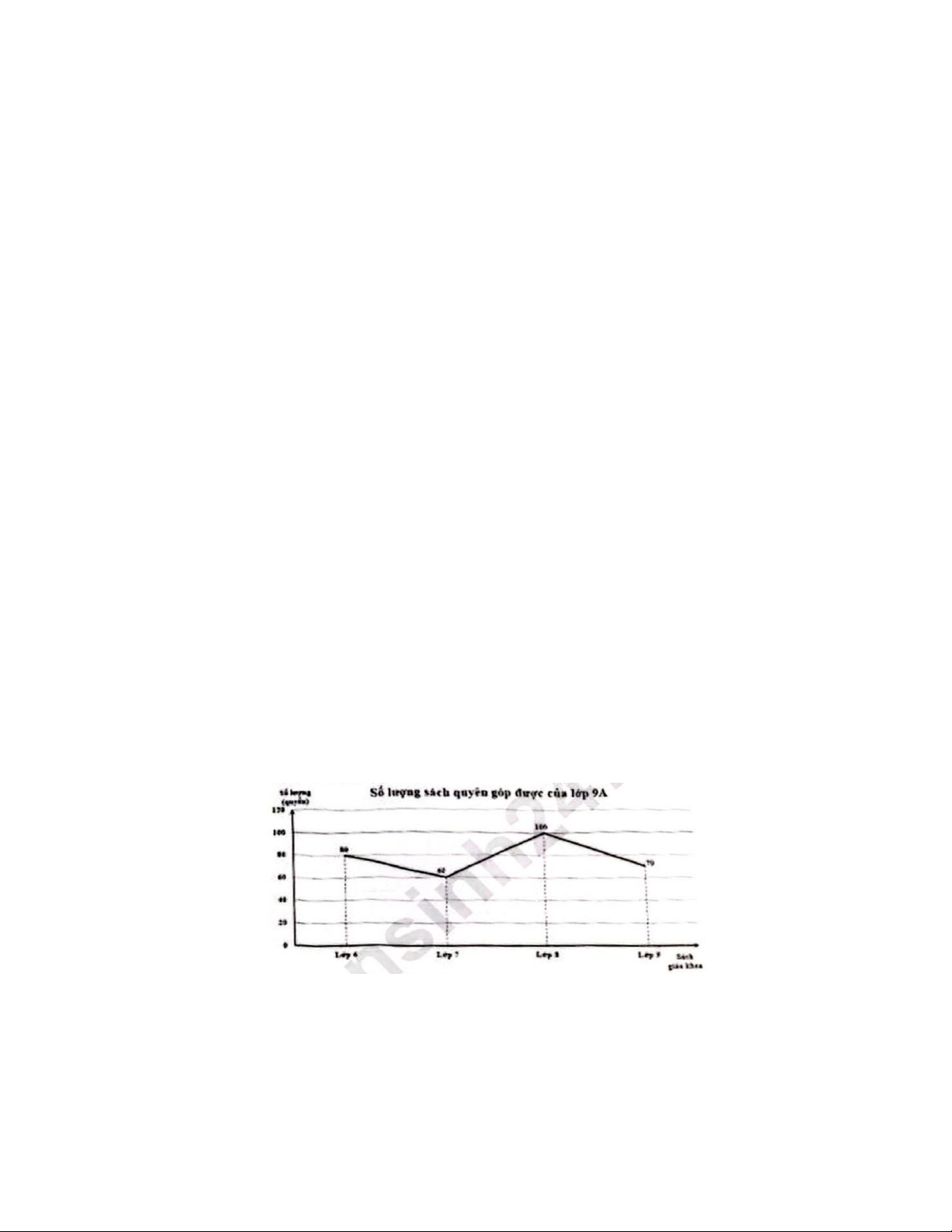 Câu 16. Biểu đồ đoạn thå̀ng dưới đây biểu diễn sồ lượng sách giáo khoa lớp 6, lớp 7, lớp 8 và lớp 9 má