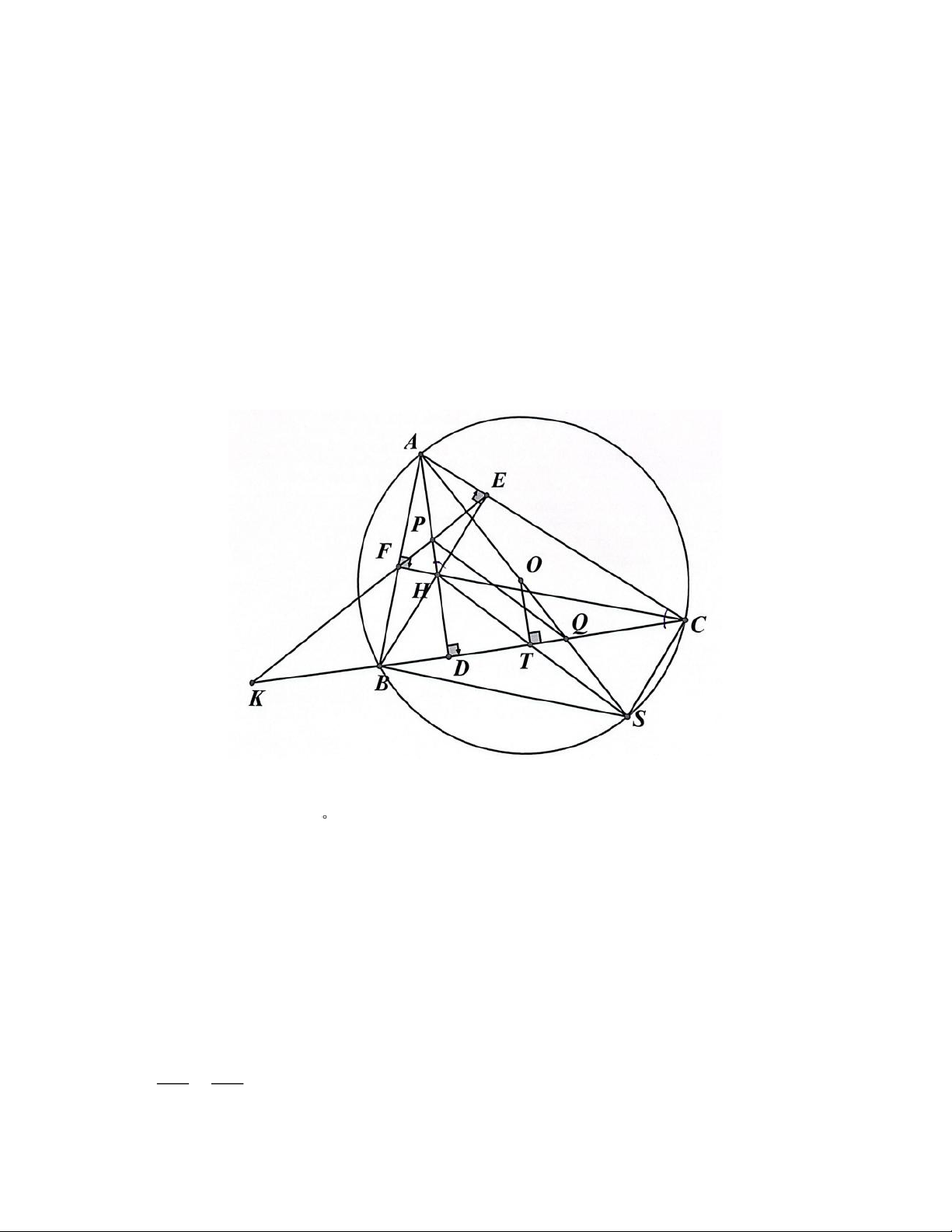 Câu 5. Cho ABC nhọn (AB < AC) nội tiếp đường tròn (O). Các đường cao AD, BE, CF cắt nhau tại H.