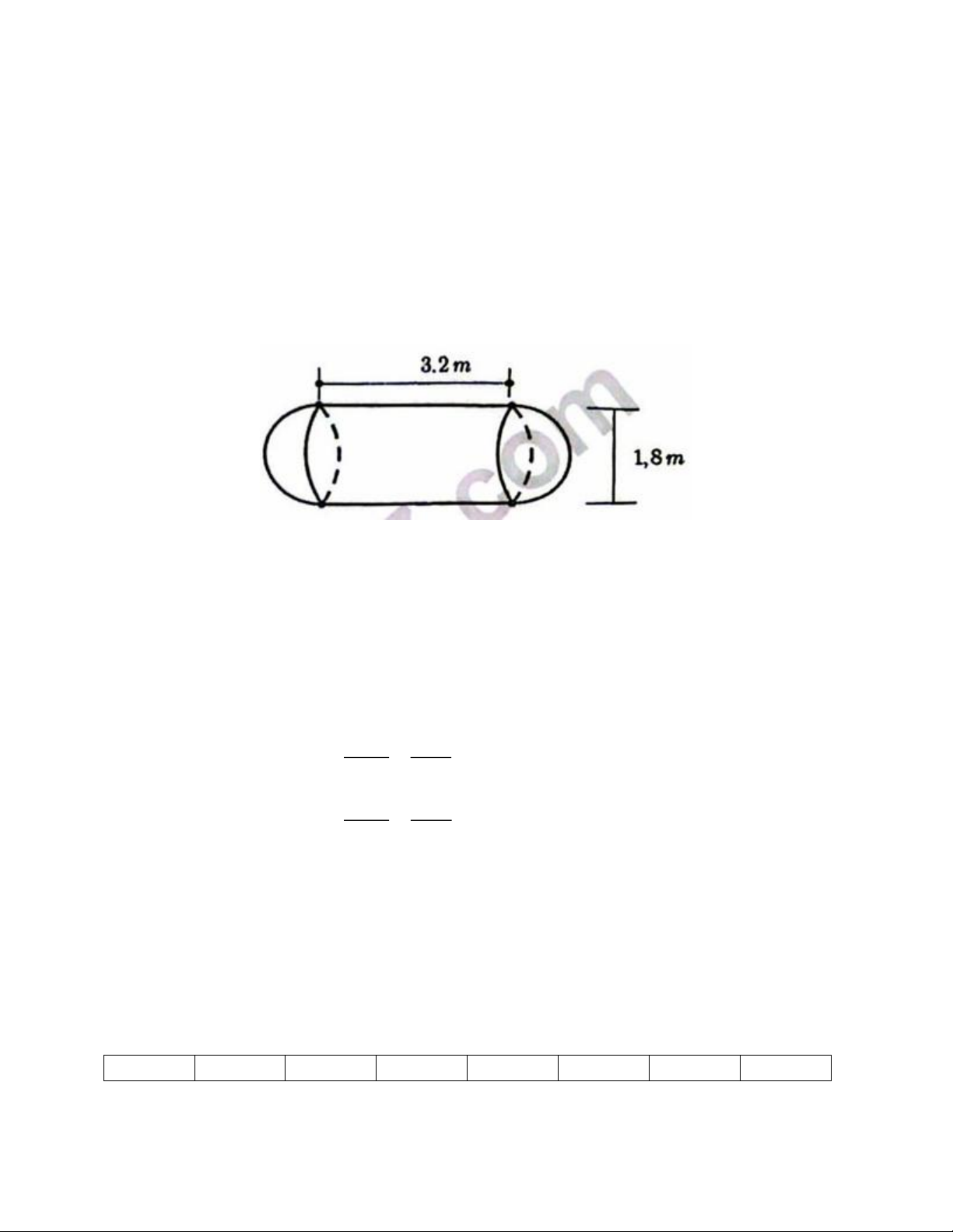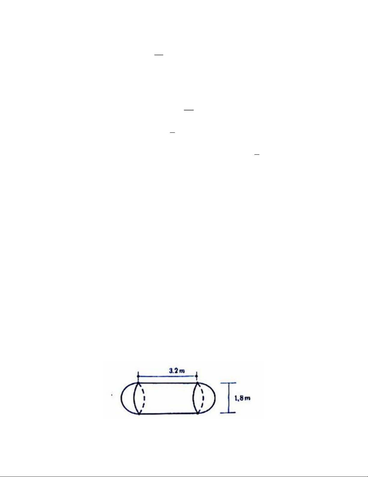 Phần thân bồn chứa nước là hình trụ có chiều cao bằng 3,2m và bán kính đáy bằng Trang 4 1,8 : 2 = 0,9m