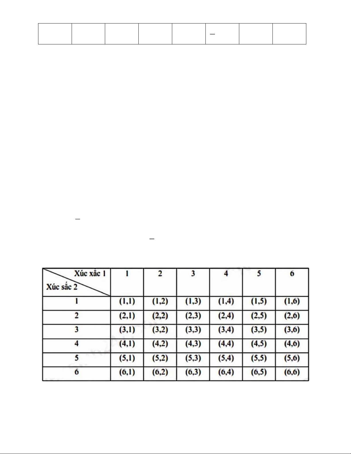Không gian mẫu của phép thử là tập hợp các ô trong bảng: = {(1,1),(1,2),...,(6,6)}