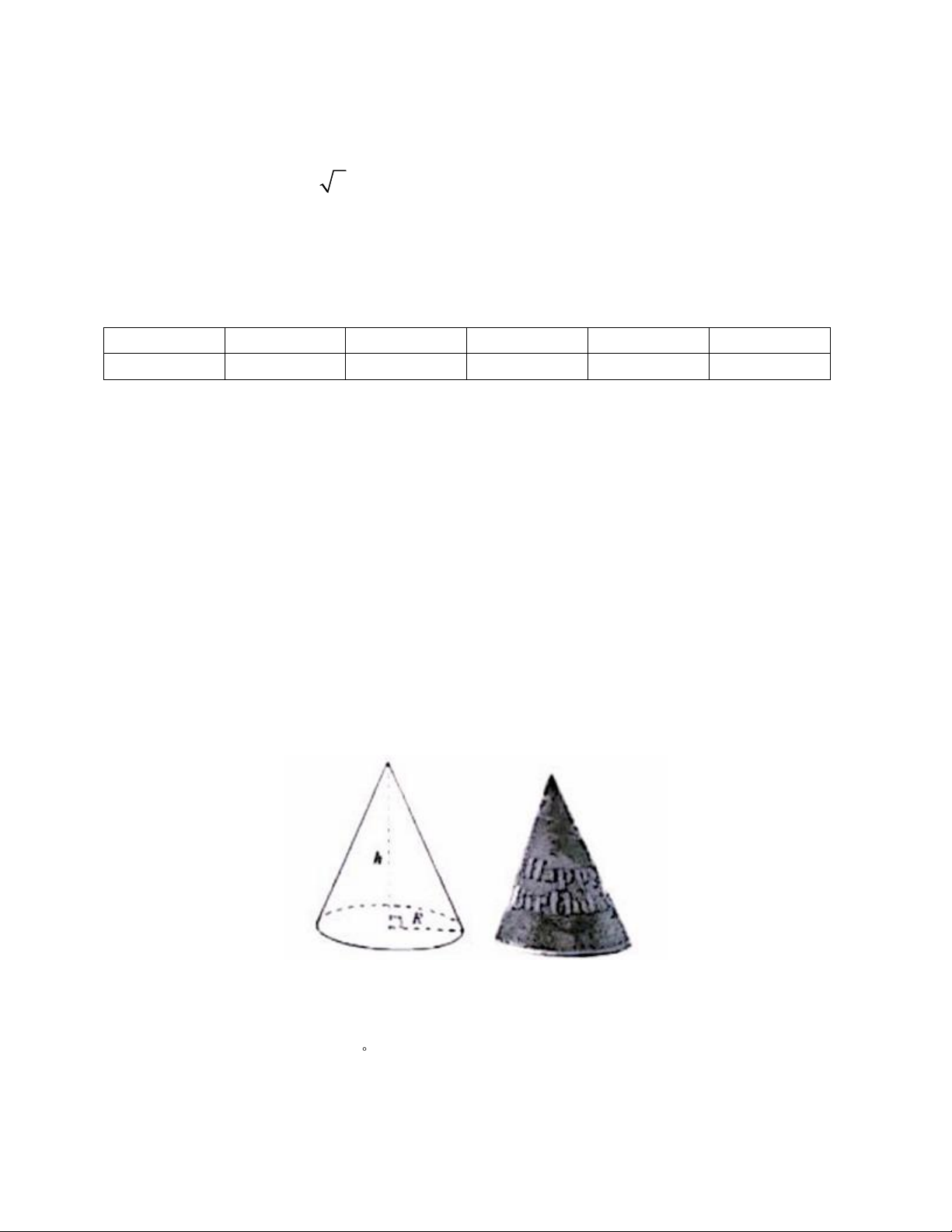 1) Một chiếc mũ sinh nhật dạng hình nón (hình về minh họa bên), biết chiều cao h