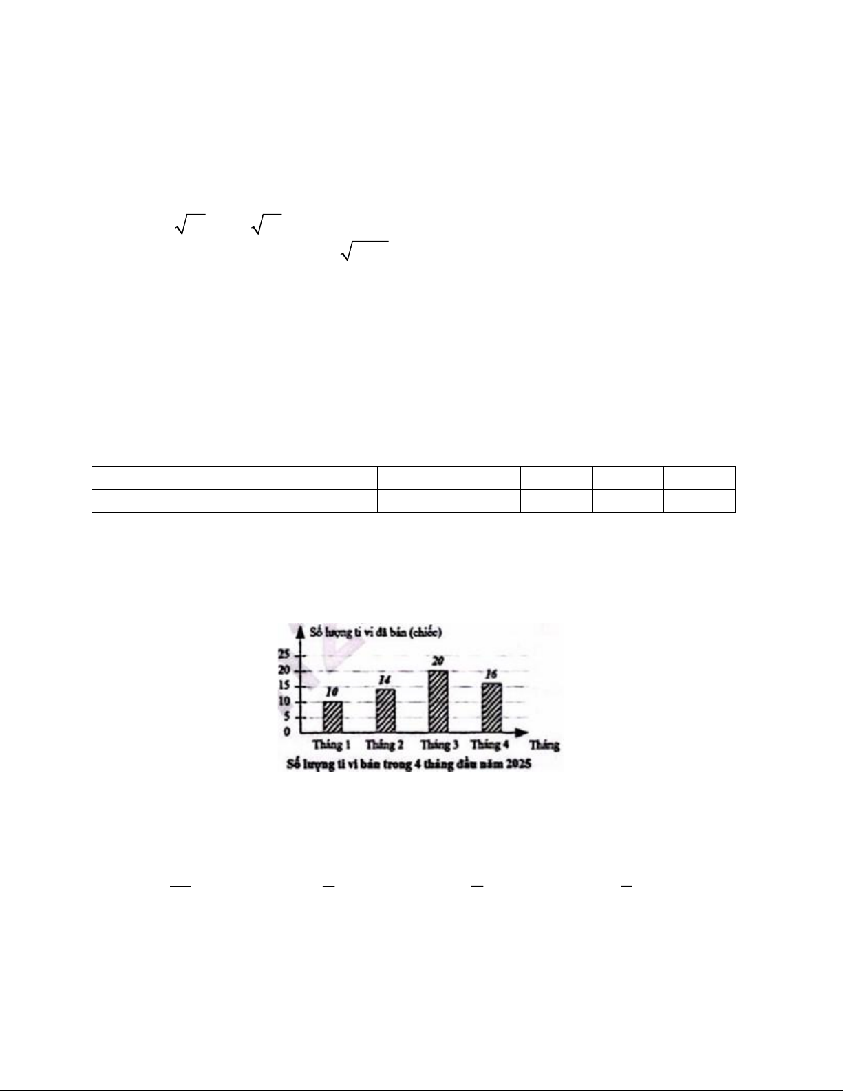 Câu 7. Trong 4 tháng đầu năm 2025, cửa hàng của bác Ninh bán được số lượng