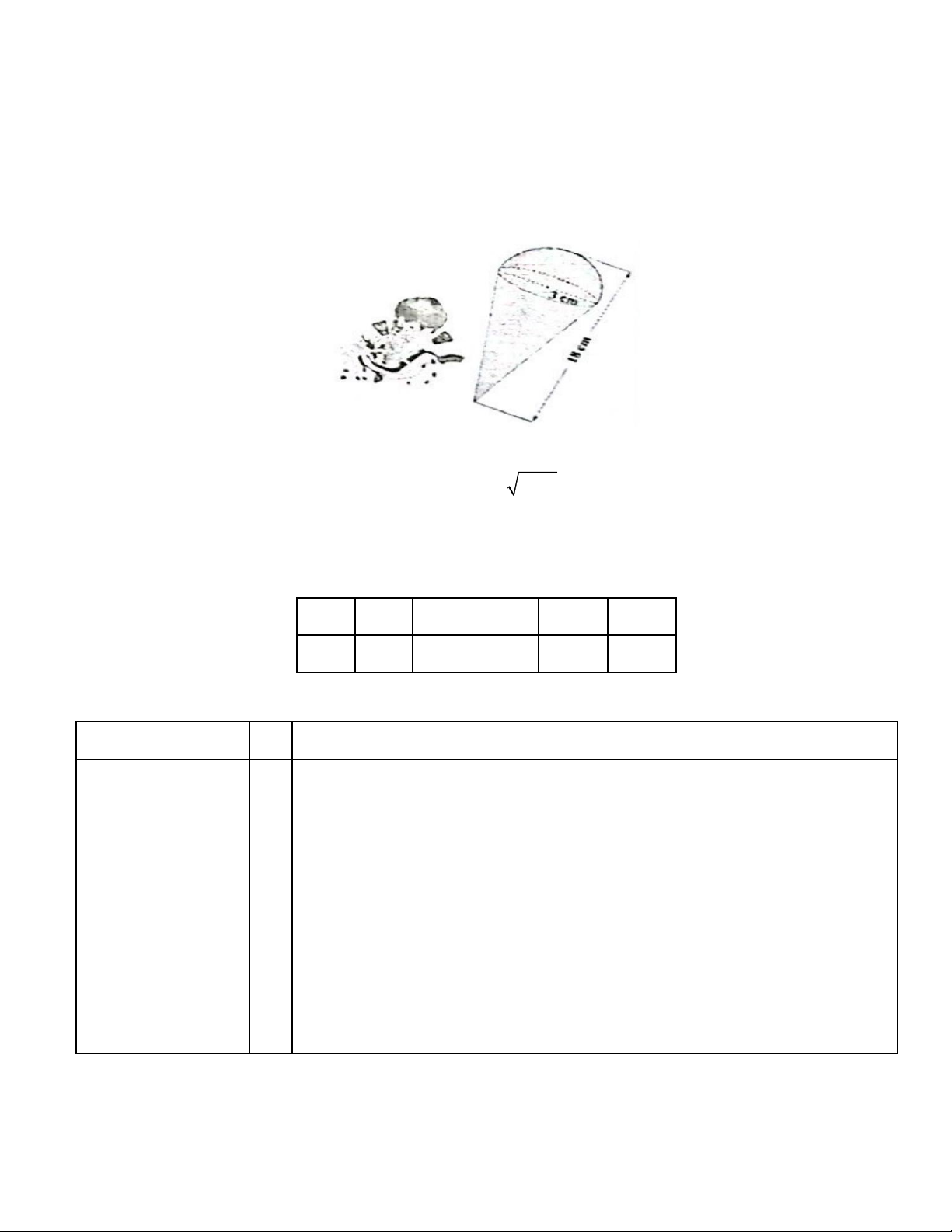 Câu 4: (0,5 điểm). Một cây kem ốc quế có chiều cao 18 cm , phần thân là lớp vỏ làm bằng bánh quế