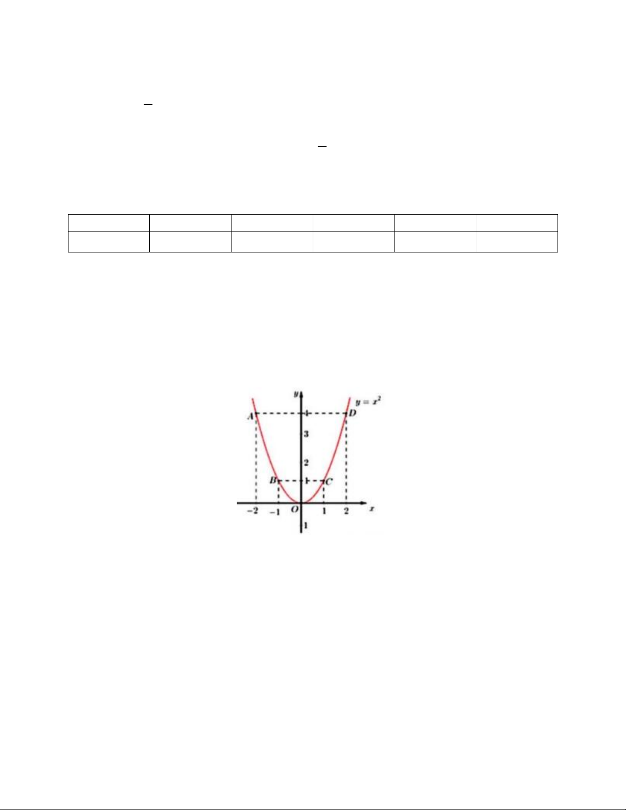 Đồ thị hàm số là đường cong parabol đi qua các điểm O(1;1);A( 2 − ;4);B( 1 − ;1);C(1;1);D(2;4)