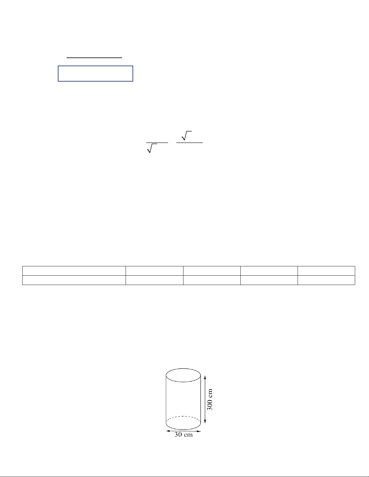 Bán kính đáy: r = 15c m = 0,15m; Chiều cao: h = 300 cm = 3m. 0,25