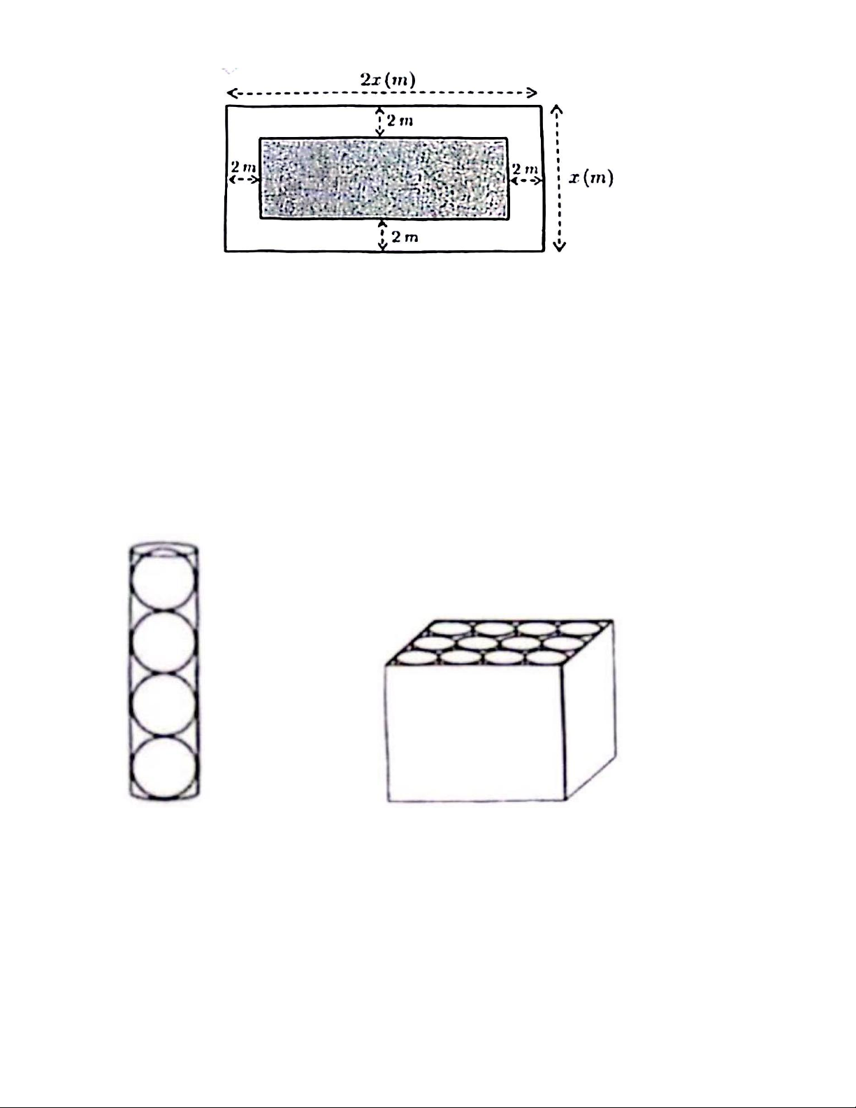 Bài 4. ( 1,0 điểm) Một khu vườn hình chữ nhật có chiều dài là 2x (m) và chiều rộng là x(m), x 4 .