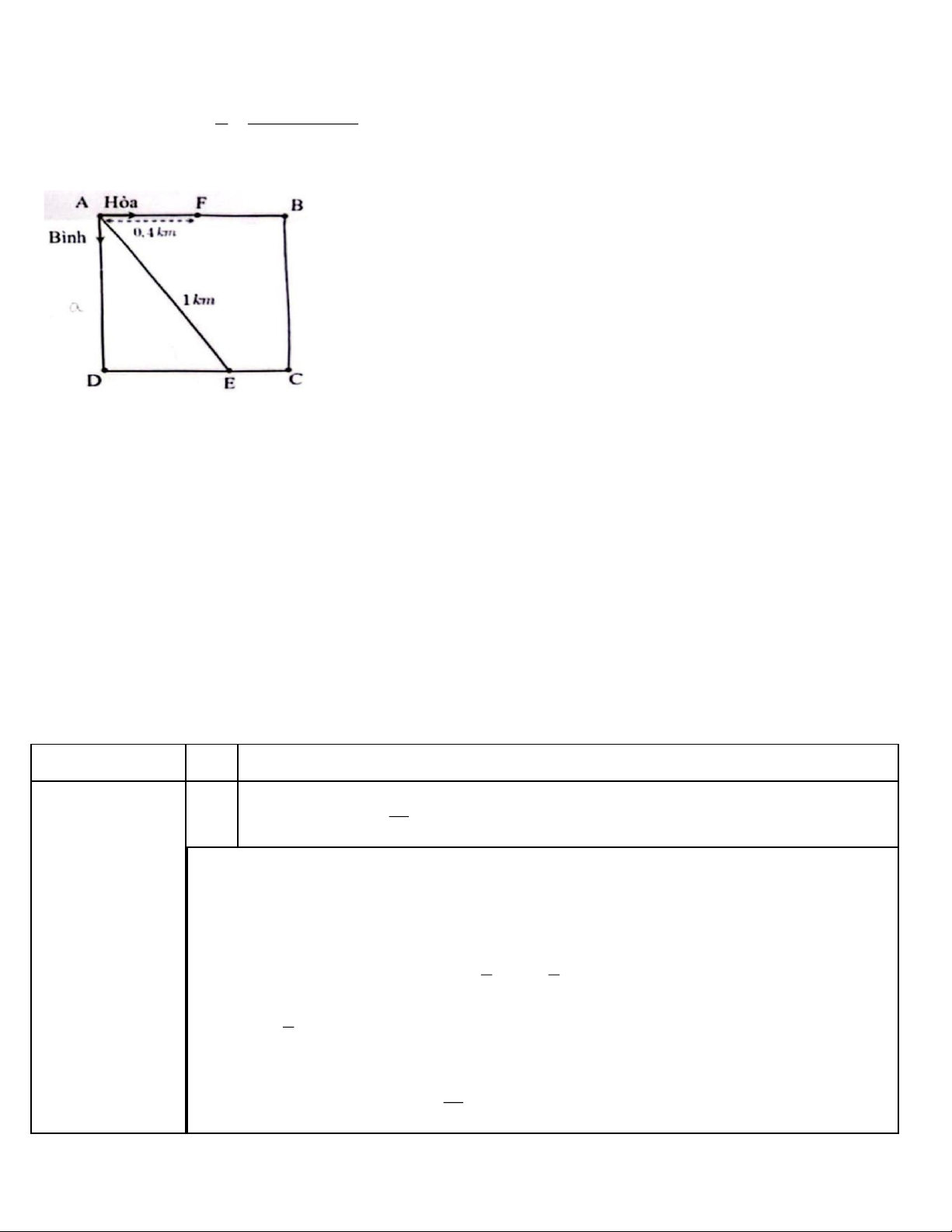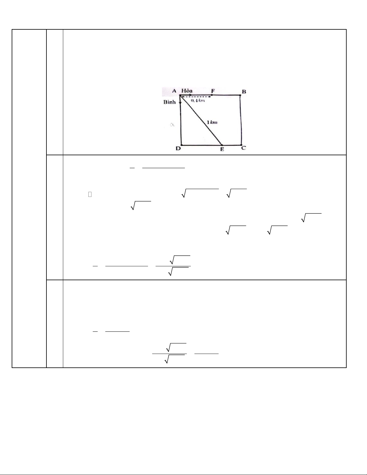 Từ vị trí A của một công viên có dạng hình vuông ABCD cạnh a ( km), hai bạn Hòa và Bình bắt đầu