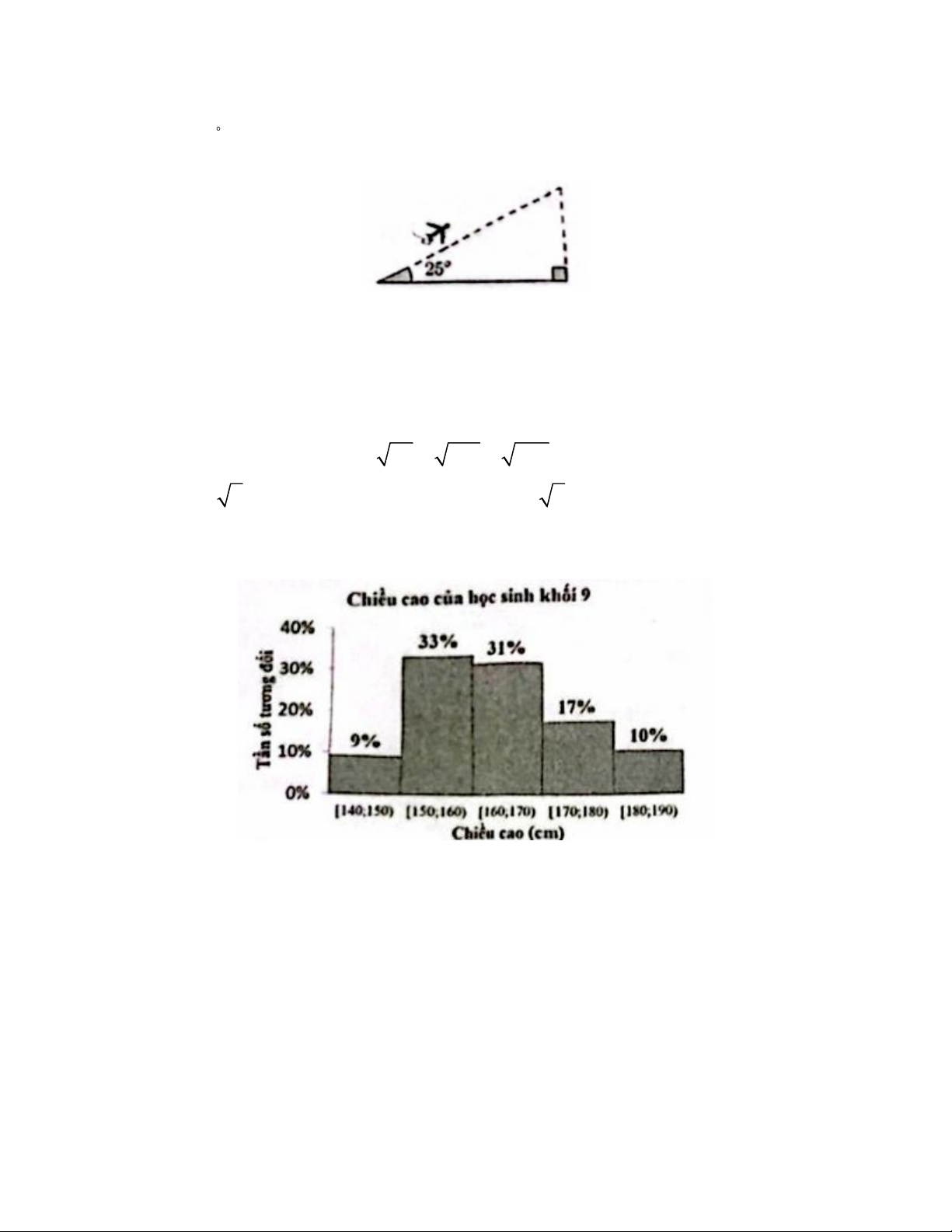 Câu 14. Chiều cao (cm) của 100 học sinh khối 9 ở một trường được ghi lại trong