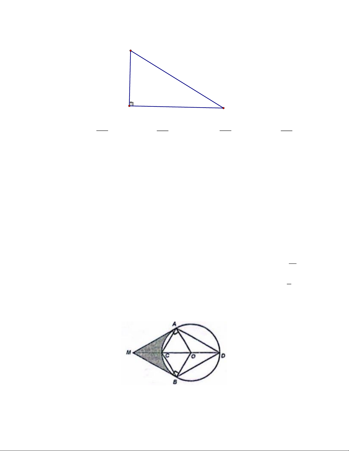 Câu 12. Cho tam giác ABC vuông tại A. Khẳng định nào sau đây đúng? B A C AC AB BC AB A. tan C = B. sin C = C. cosC = D. cot C = AB BC AB BC