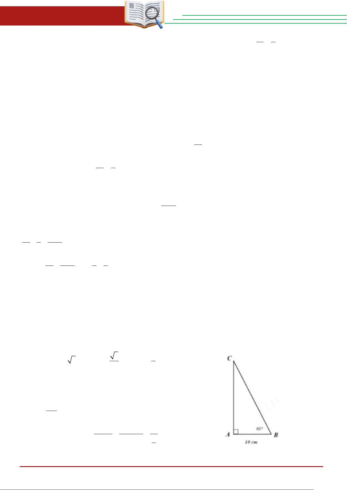 Xét tam giác ABC vuông tại Cos B AB = . BC Độ dài cạnh BC là: AB 10 10 BC = = = = 10× 2 = 20 (cm) Cos B Cos 60° 1 2