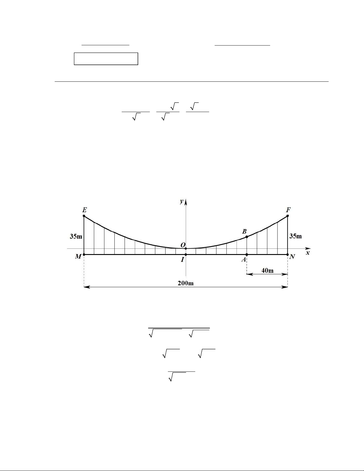 dây IO dài 5m, với I là điểm chính giữa cầu. Hãy tính độ dài đoạn dây AB, biết AN 40m (xem Hình 1). Trang 1/9 Hình 1