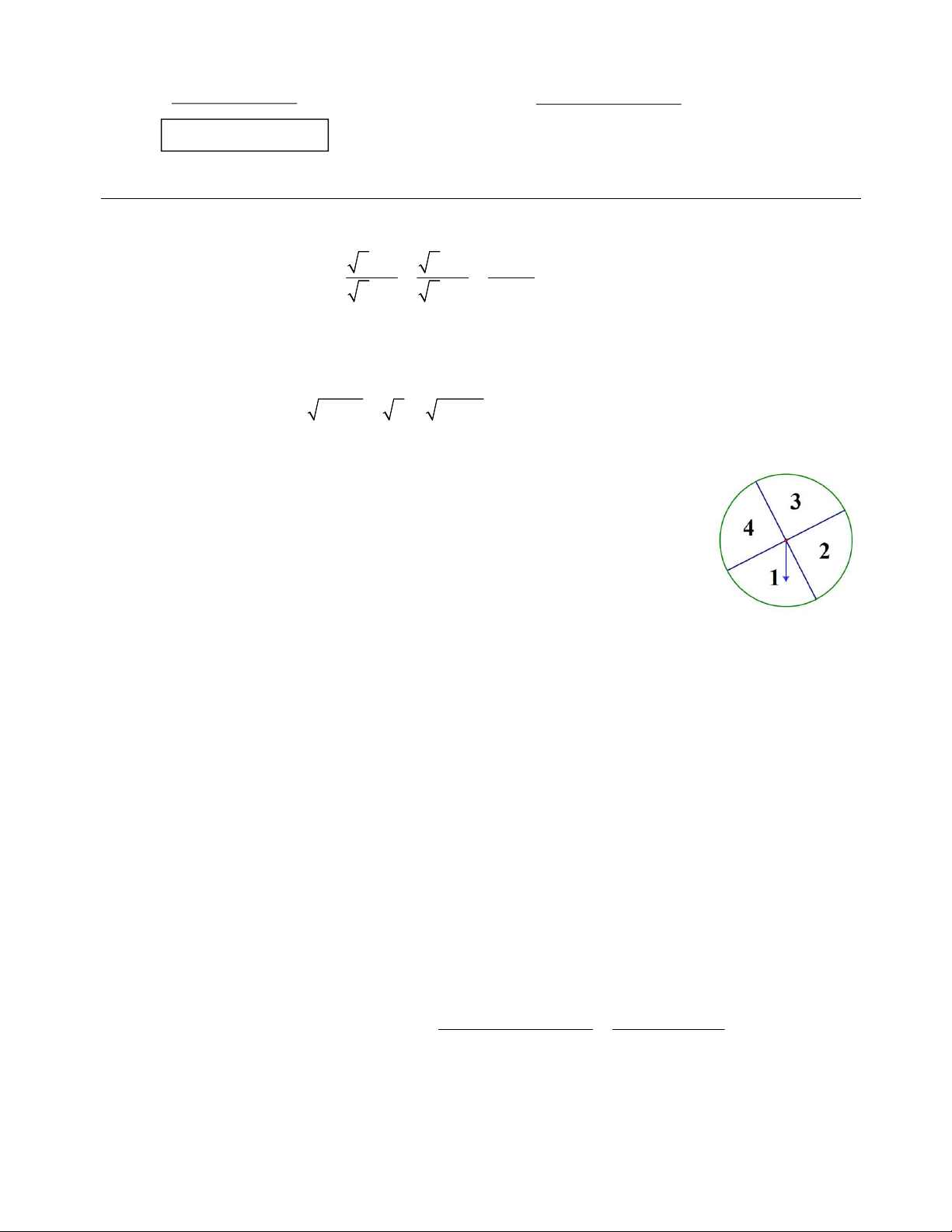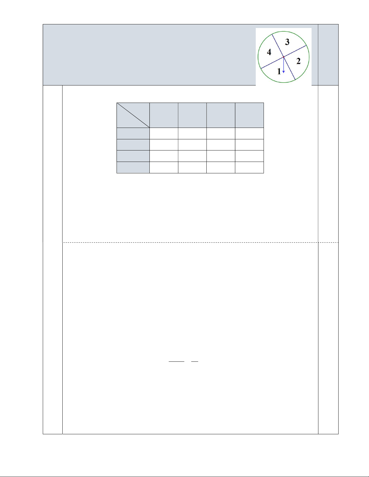 Câu 3. Một tấm bìa cứng hình tròn được chia thành bốn phần bằng nhau, đánh số ;