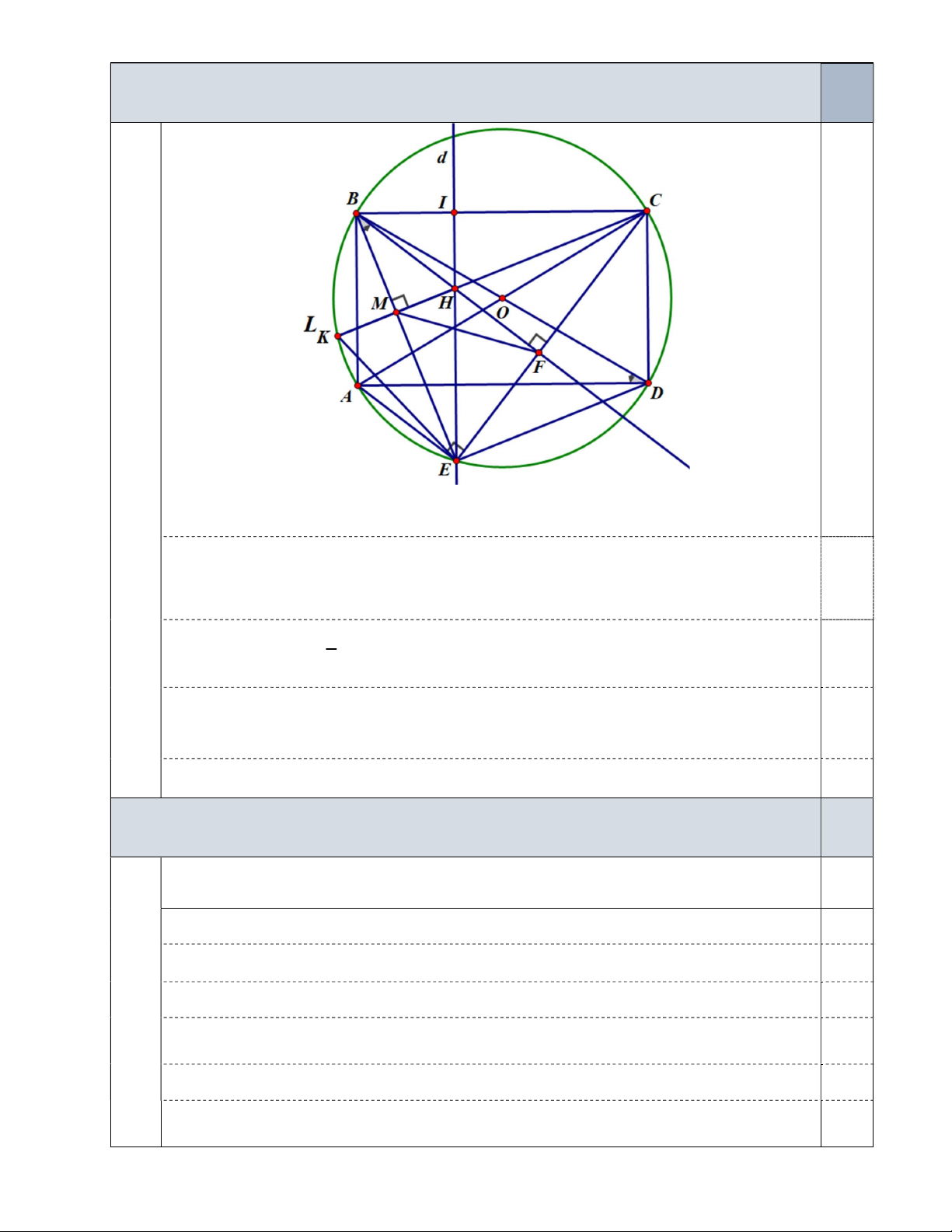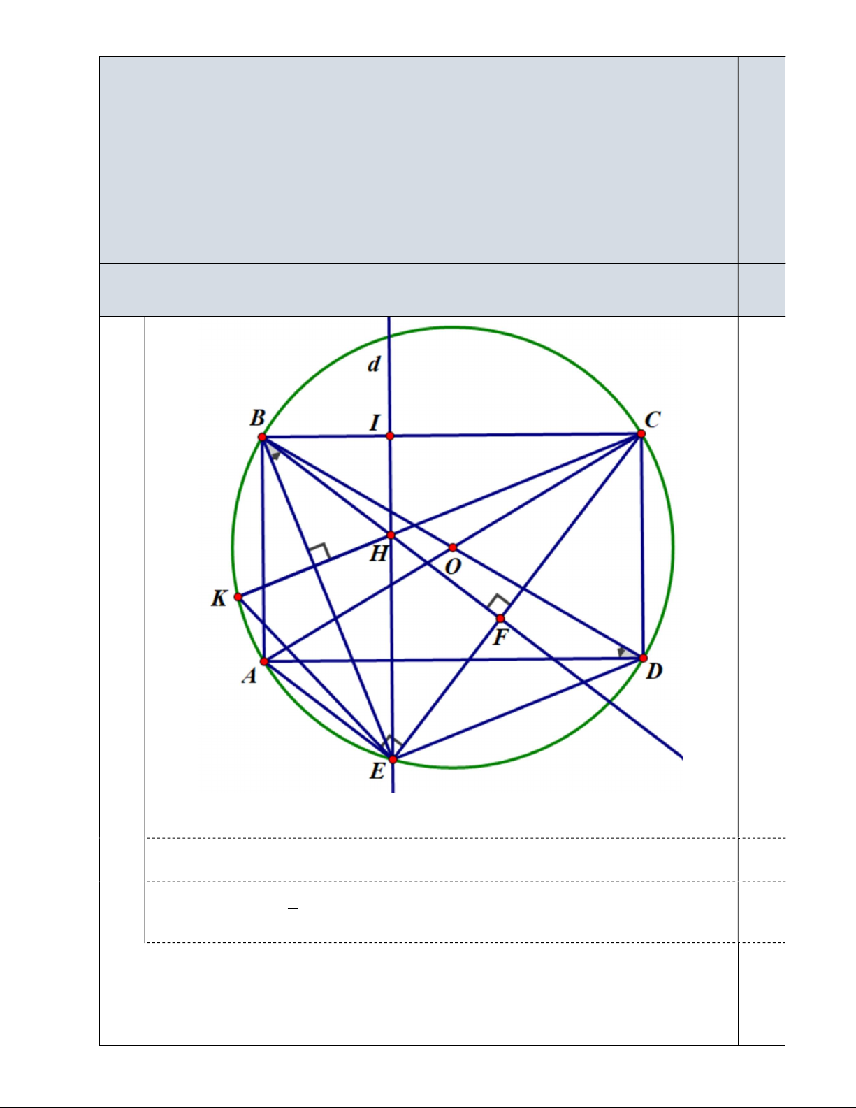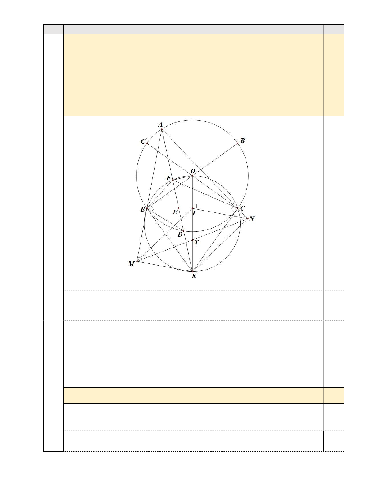 Câu 4b) Chứng minh rằng K thuộc đường tròn ( ) O . 1,0 điểm 0,125
