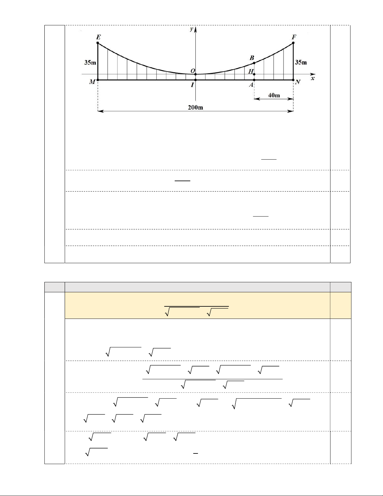 chính giữa cầu. Hãy tính độ dài đoạn dây AB, biết AN 40m (xem Hình 1). Hình 1 Câu 2 (1,5 điểm). 2 6x 3x