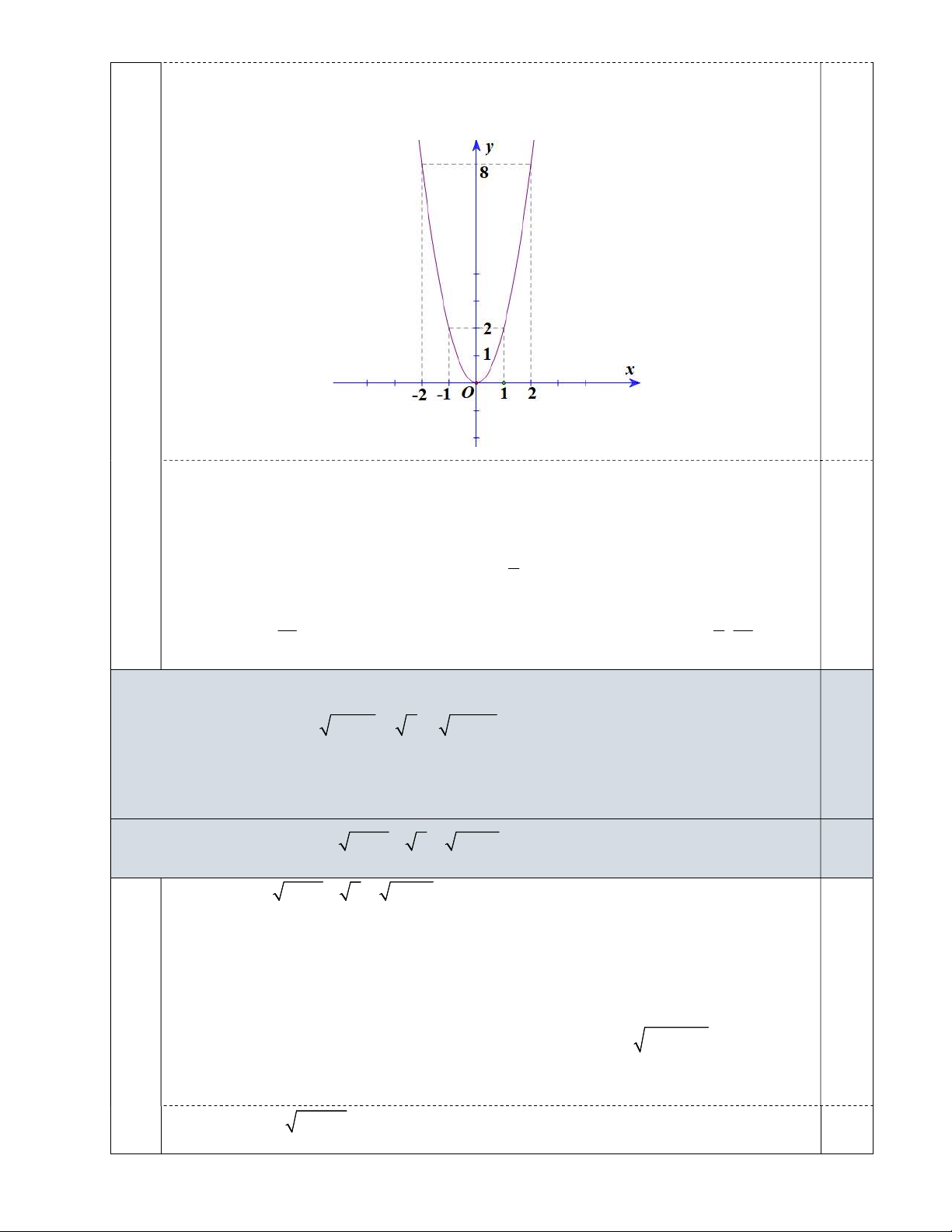 Lập bảng giá trị có tính chất đối xứng ( ít nhất 5 cặp ; x y) x 2 1 0 1 2 0,25 2 y 2x 8 2 0 2 8
