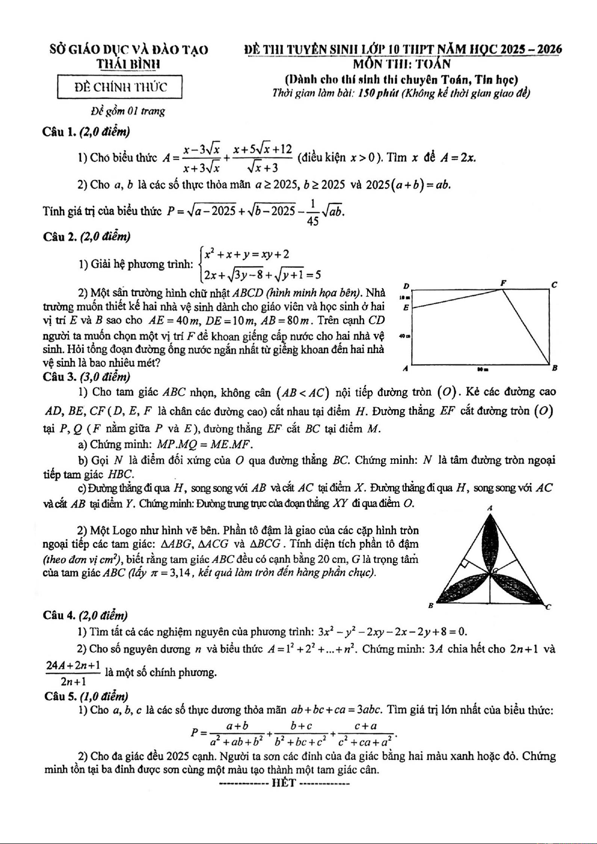 LỚP 10 TOÁN 2 K24-27 CHUYÊN THÁI BÌNH
