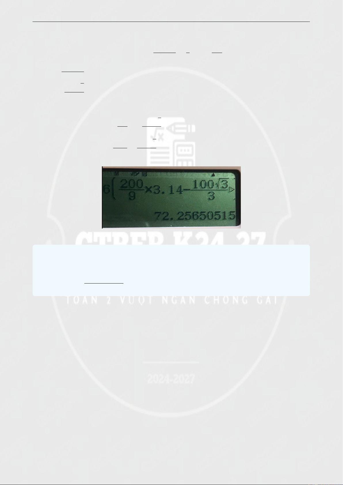 1 hình viên phân (tô đậm ) 9 3 √ ! 200π 100 3 ⇔ S = S = 6 − tô đậm 6 hình vp 9 3 Câu 4. (2,0 điểm)