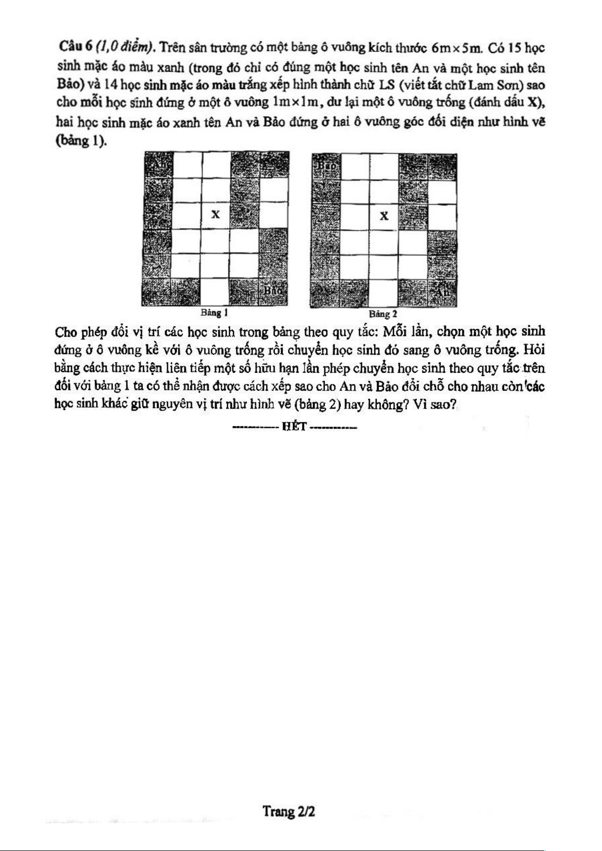 Do đó không thể nhận được cách xếp sao cho An và Bảo đổi chỗ cho nhau còn các học sinh khác giữ nguyên vị trí. 7