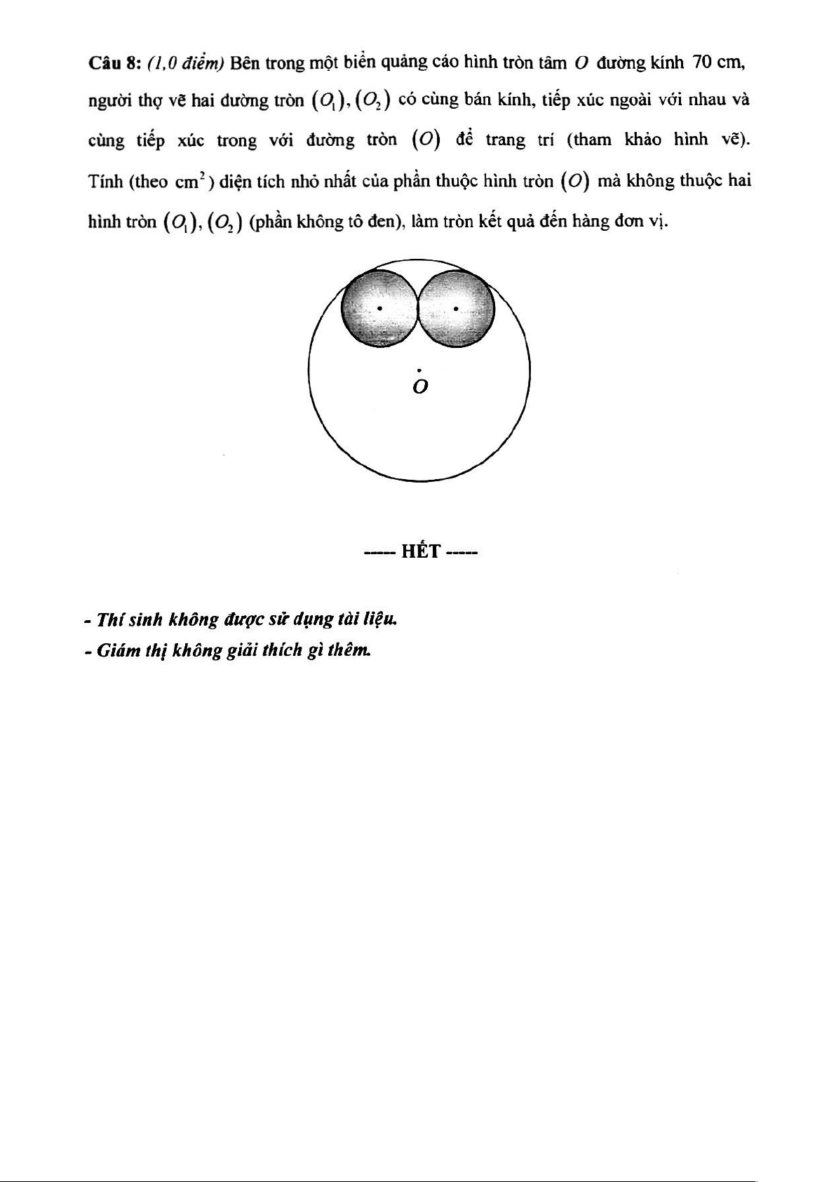 tròn (O) để trang trí (tham khảo hình vẽ). Tính (theo 2