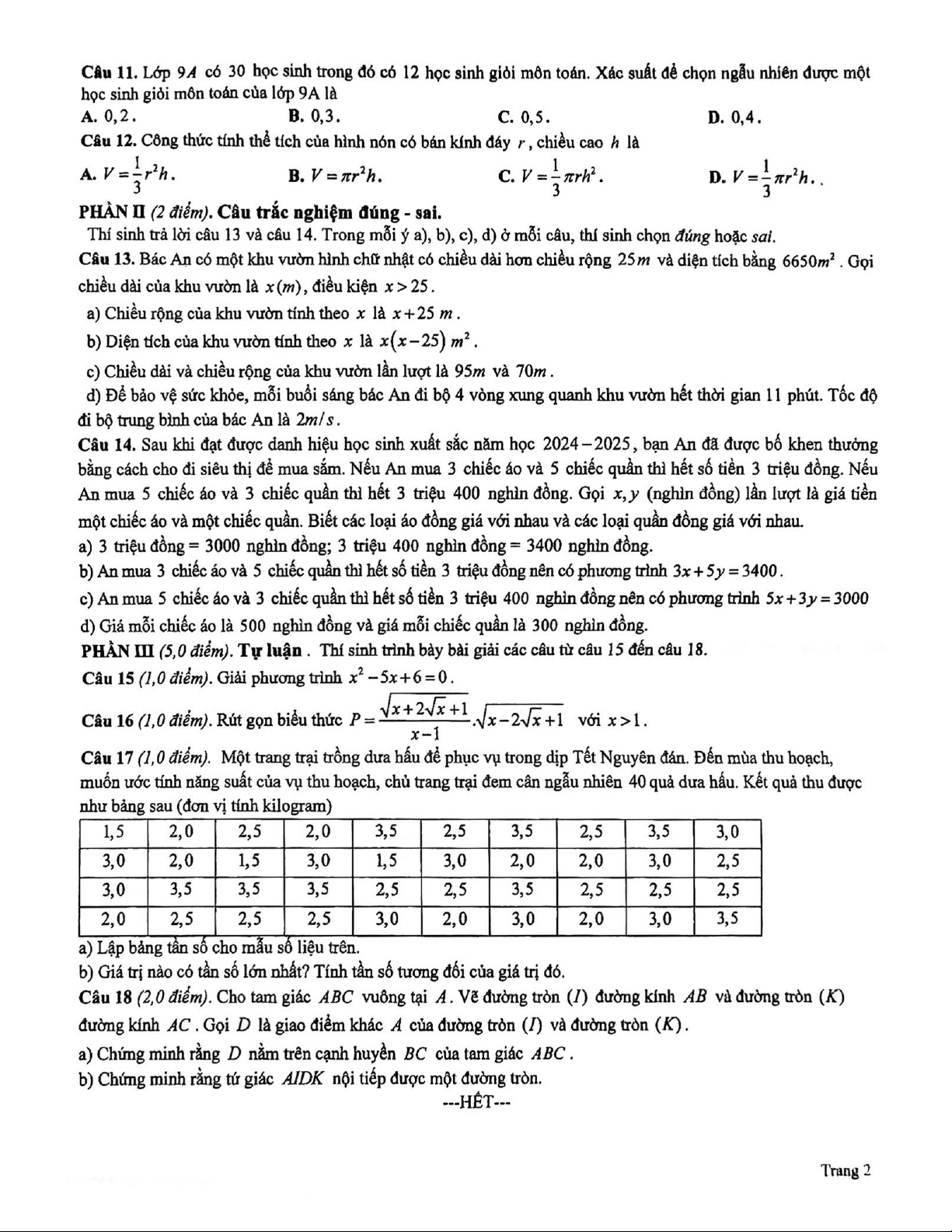 ĐỀ TUYỂN SINH VÀO 10 – 2025 – 2026 ĐẠI TRÀ