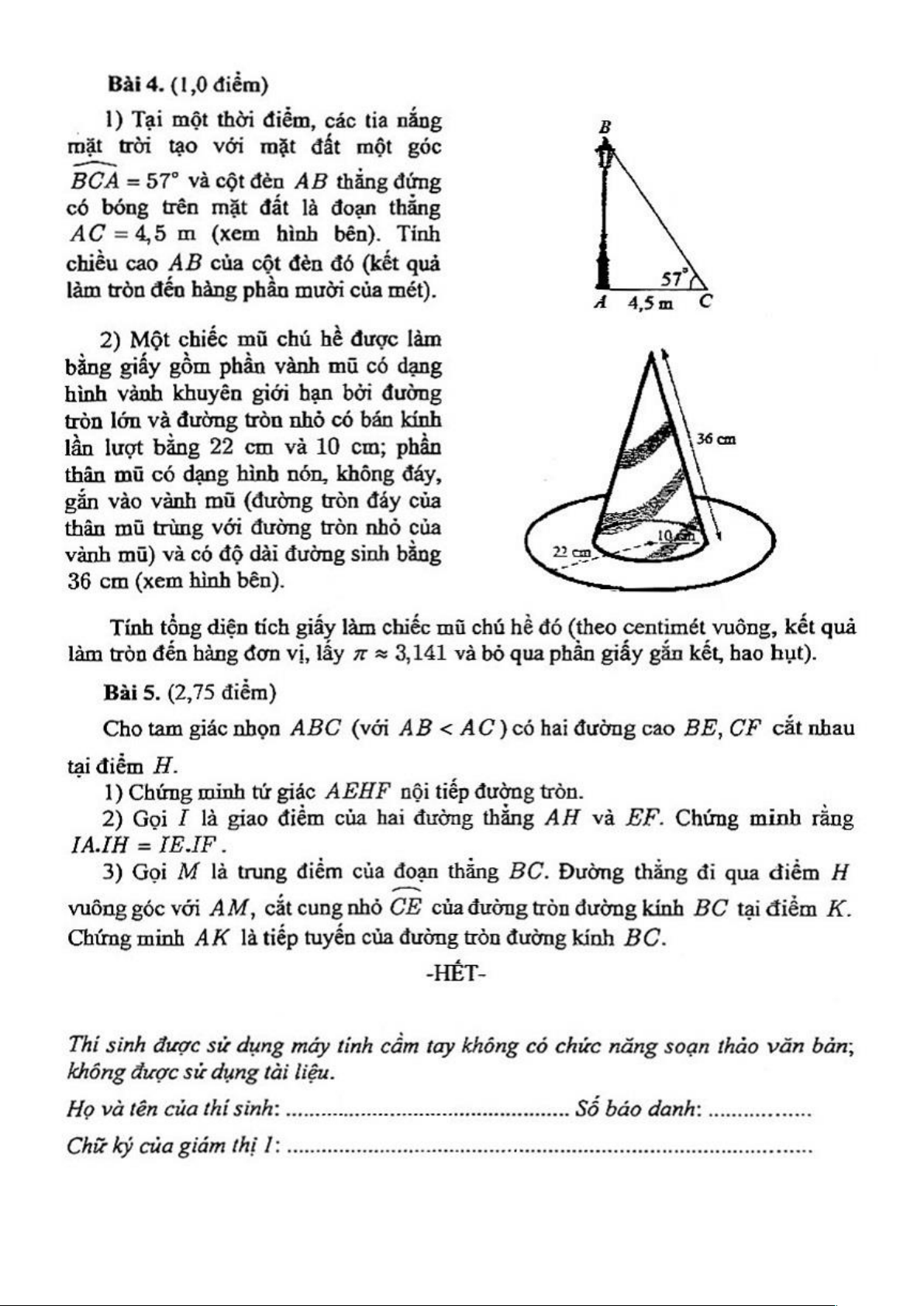 Vậy tổng diện tích giấy làm chiếc mũ chú hề là khoảng ( 2 2337 cm ) Bài 5 (2,75 điểm)
