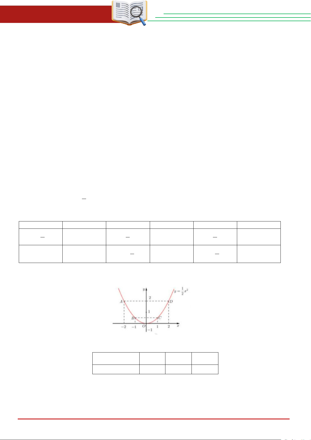 1, Vẽ đồ thị hàm số: 1 2 y = x 2 Lời giải Có bảng giá trị : x 2 − 1 − 0 1 2 1 2 y = x 2 1 0 1 2 2 2 2 Điểm ( 2; − 2) 1 1; − 0;0 1 2;2 ( ) 1; ( ) 2 2